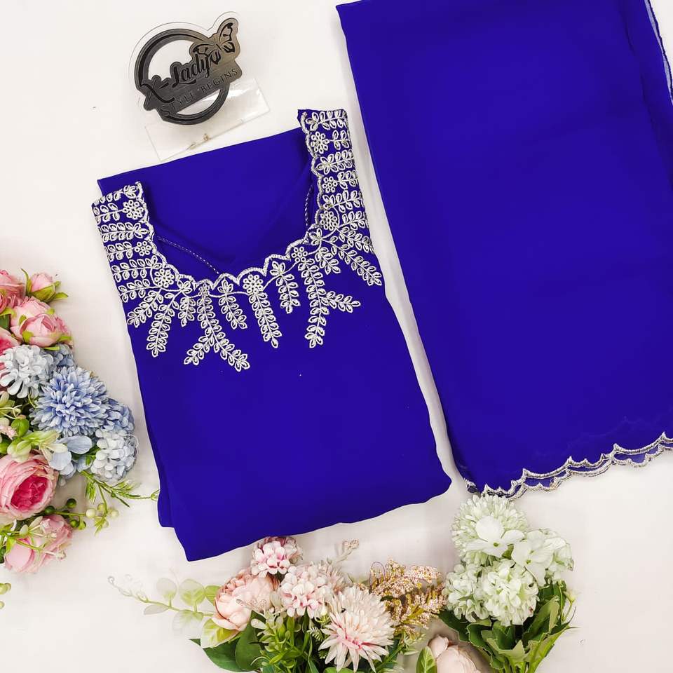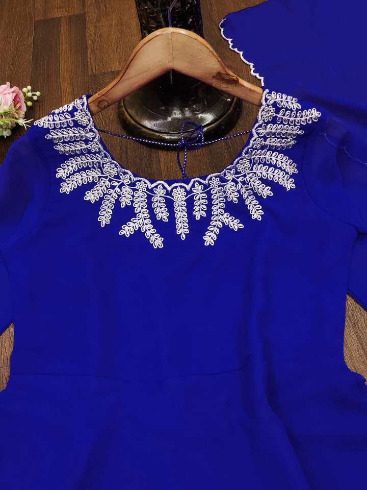 ชุดเดรส Anarkali ผ้าจอร์เจตต์ปักลายดอกไม้ พร้อมผ้าคลุมไหล่ ขนาด 52 นิ้ว ดีไซน์แบบแม็กซี่ ไซส์ M-3XL สง่างามในฤดูร้อน ผ้าเนื้อดี ยาวพิเศษ