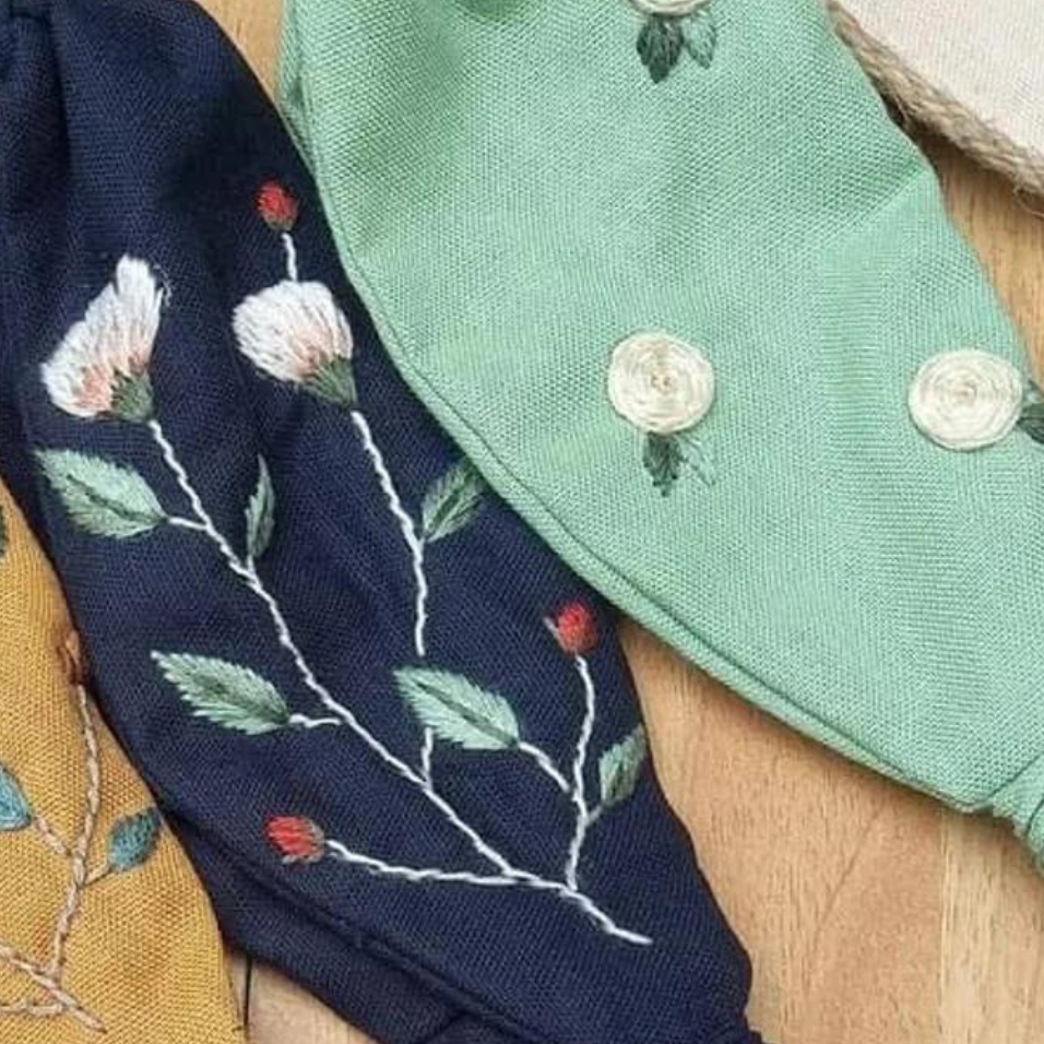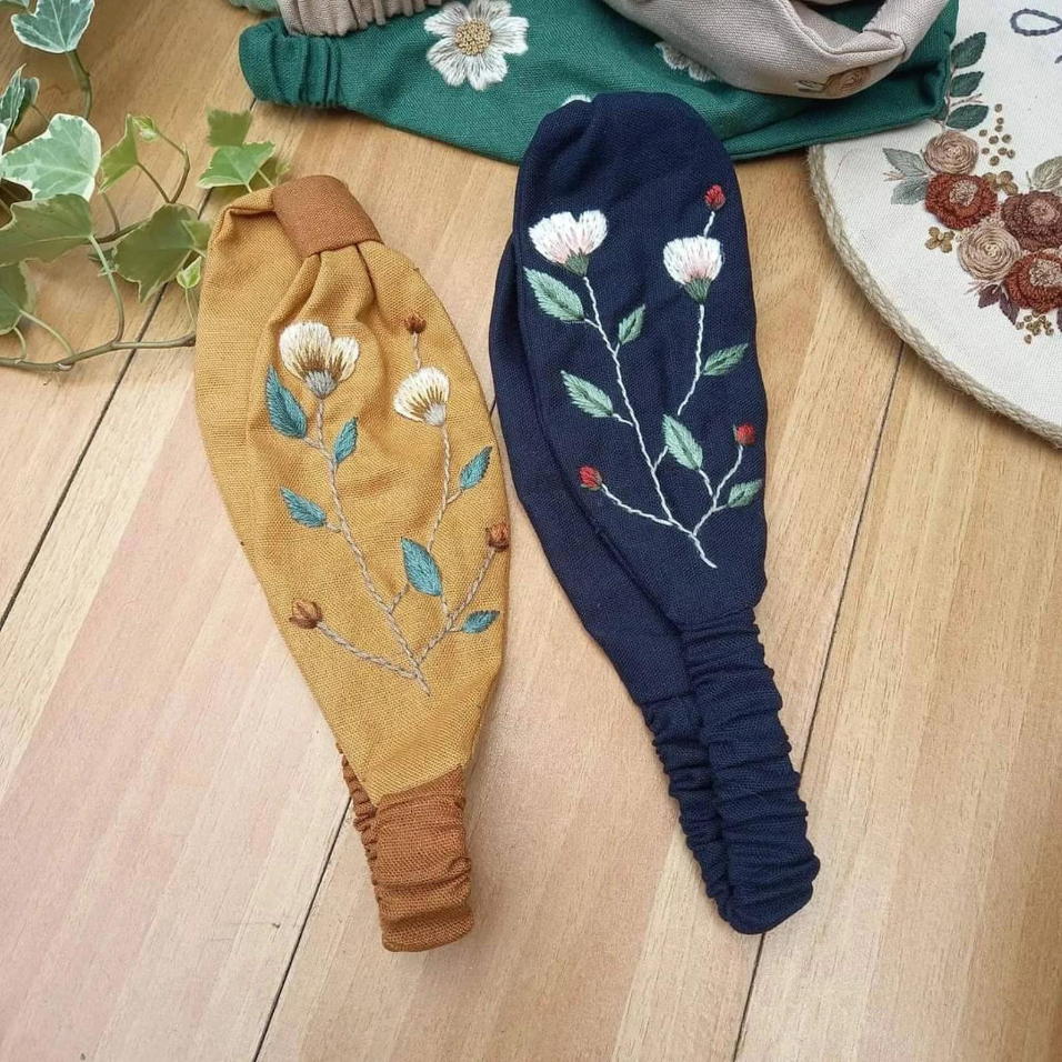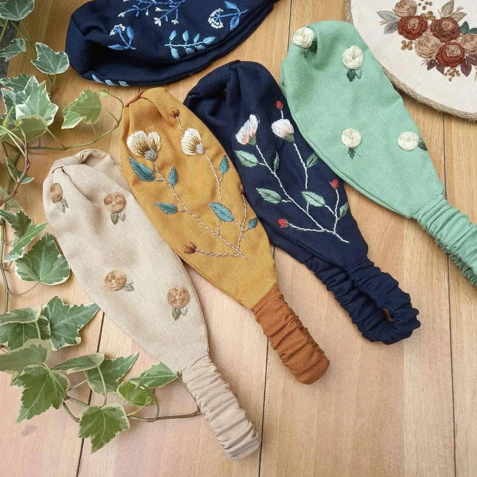 ผ้าโพกหัวปักลายดอกไม้ผ้าลินินผ้าโพกหัวปักดอกไม้ดอกไม้น่ารักอุปกรณ์แต่งผมแนววินเทจผลิตในเวียดนาม