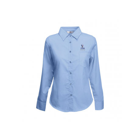 เสื้อแขนยาวเข้ารูปสีฟ้าปักรายละเอียดผ้าไหมยืดนุ่มขนาด XL 4XL สำหรับใส่ในสำนักงาน