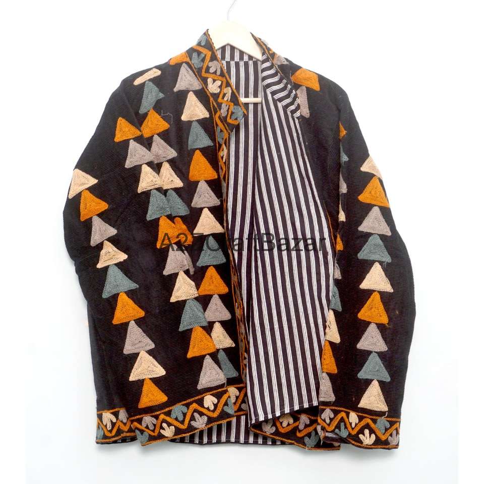 เสื้อแจ็คเก็ตผ้าฝ้ายลายปักดอกไม้ติดกระดุม บุผ้าลายทาง งานแฮนด์เมด สำหรับฤดูหนาวและฤดูใบไม้ร่วง แห้งเร็ว เป็นมิตรกับสิ่งแวดล้อม ระบายอากาศได้ดี