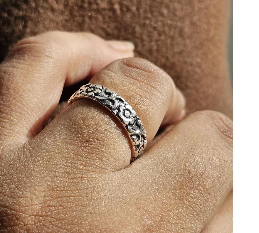 ชื่อ:แหวนเงินแกะสลักลายดอกไม้