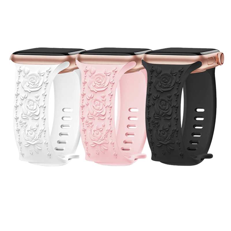 สายนาฬิกาข้อมือซิลิโคนสีขาวลายดอกไม้สลักลายสำหรับผู้หญิง ระบายอากาศได้ดี ดีไซน์ดอกไม้แบบนูน ขนาด 49 มม.