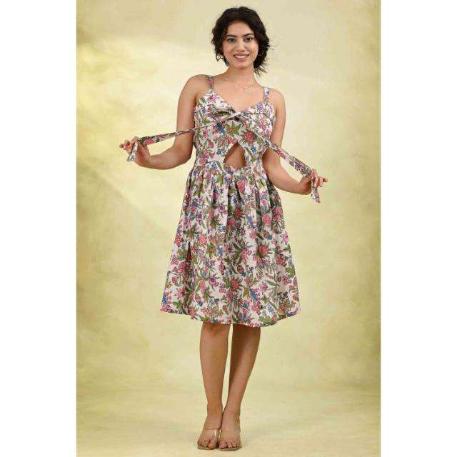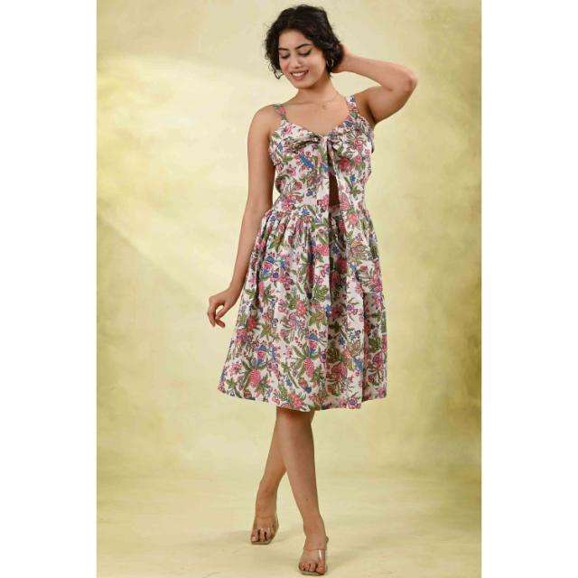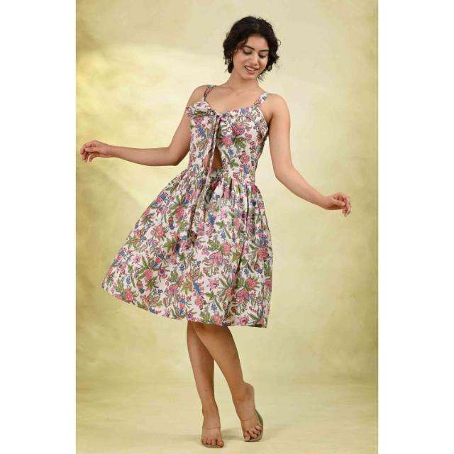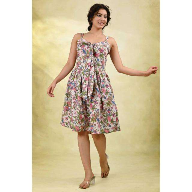 เดรสทรงเอไลน์ลายดอกไม้ ผ้ารักษ์โลก ซักได้ สำหรับผู้หญิง เดรสแขนกุดยาวปานกลาง พร้อมเชือกผูกเอว เดรสลำลองสำหรับฤดูร้อน