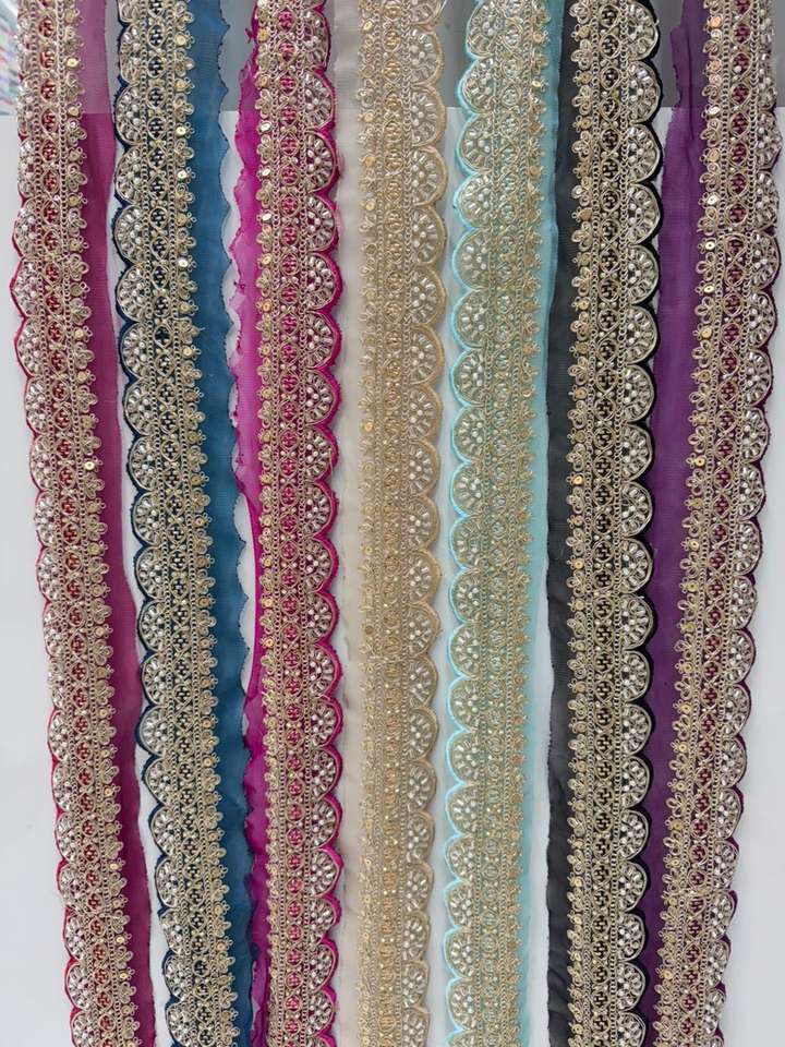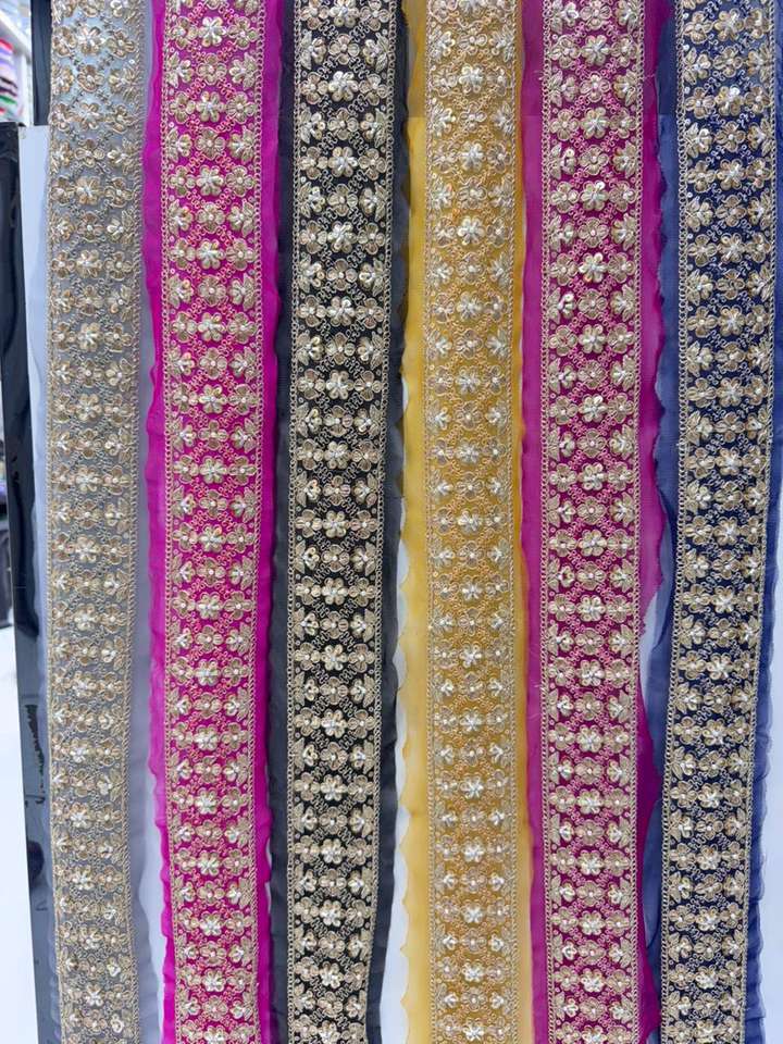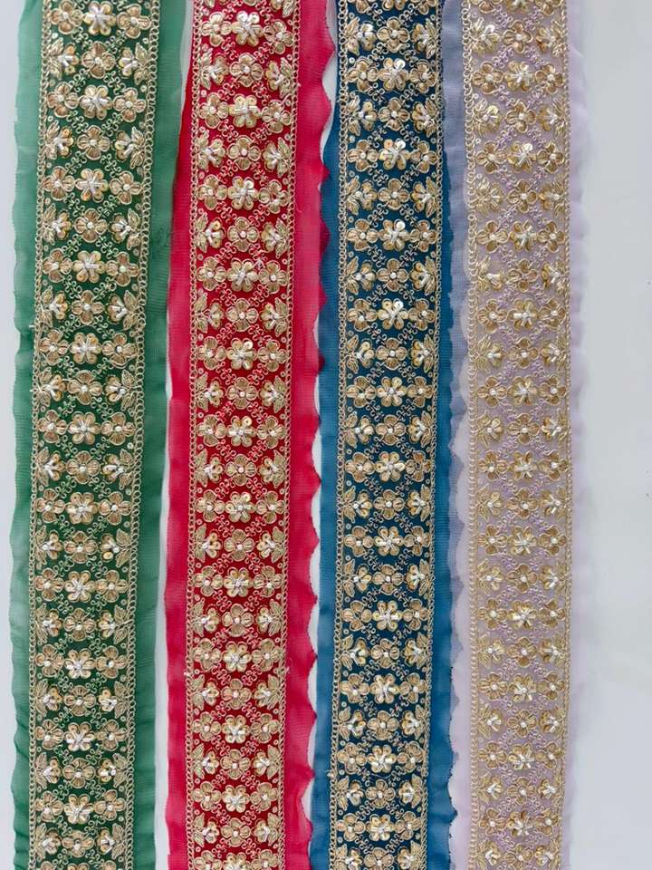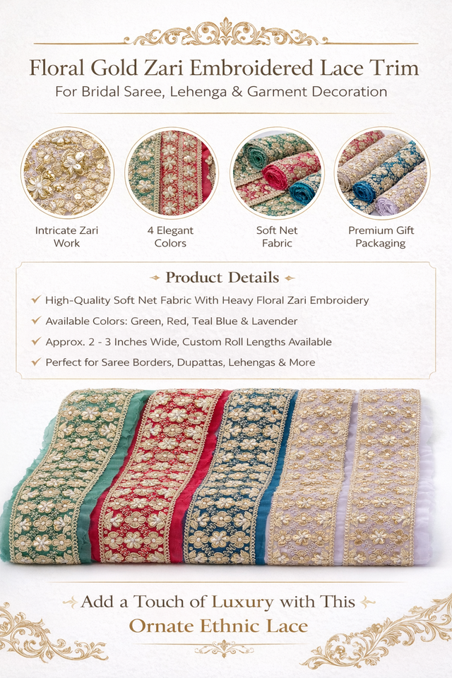 ลูกไม้ปักลายดอกไม้สีทองประดับเลื่อม 100% ผ้าฝ้าย สำหรับตกแต่งขอบผ้าส่าหรี เลเฮนกา ดูปัตตา รองเท้า และกระเป๋า
