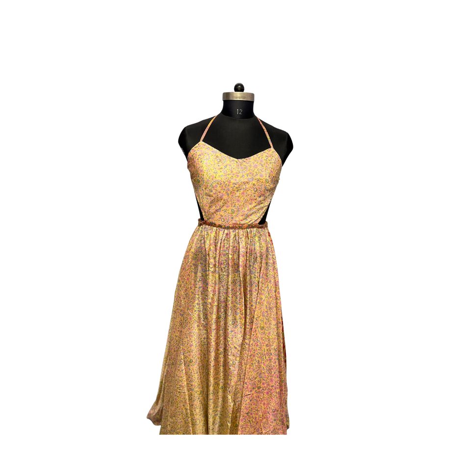 ชุดเดรสยาวผ้าไหมฮาบุไทลายดอกไม้ สายเดี่ยว สำหรับงานปาร์ตี้ในสวนช่วงฤดูร้อน ชุดเดรสผ้าไหมเซ็กซี่เปิดหลังสำหรับผู้หญิง สไตล์หรูหราสำหรับรีสอร์ท