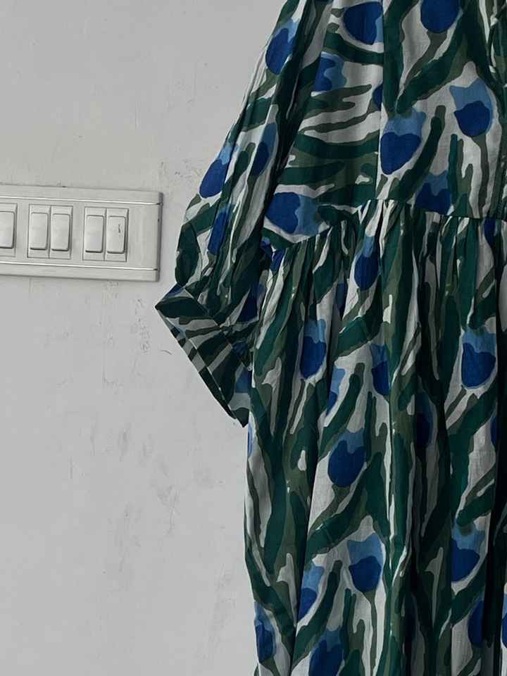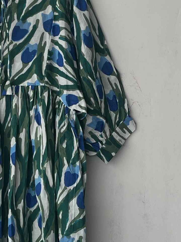 ชุดเดรสแขนสั้นผ้าฝ้ายพิมพ์ลายดอกไม้, ชุดเดรสแขนสั้นคอลึกชุดลำลองโบฮีเมียนทำด้วยมือสำหรับผู้หญิง