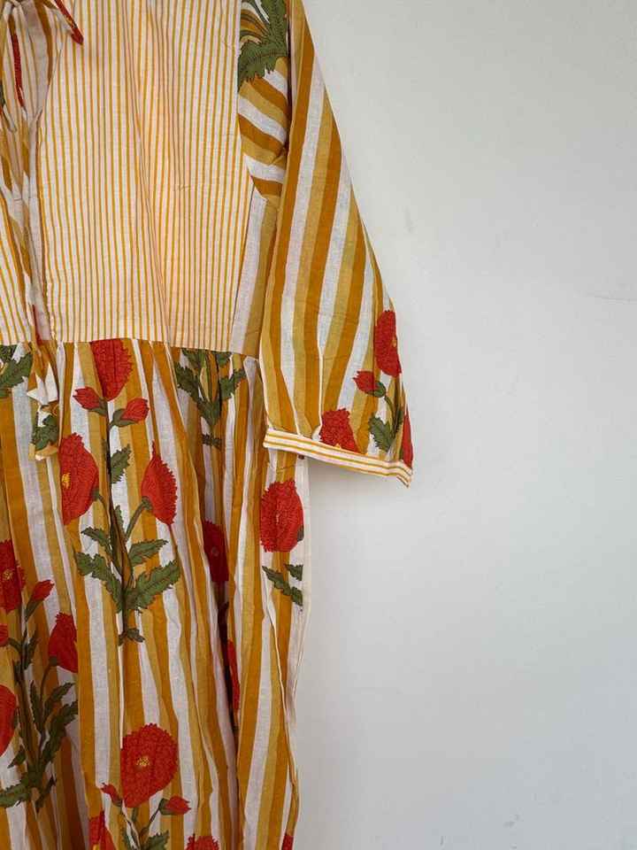 ชุดเดรสผ้าฝ้ายพิมพ์ลายดอกไม้, เดรสแขนสั้นคอลึกชุดเดรสฤดูร้อนพิมพ์ลายโบฮีเมียน
