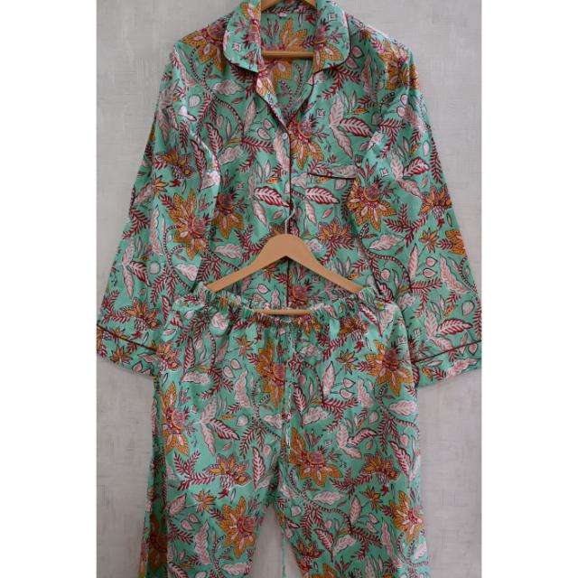 ชุดนอนผ้าฝ้ายพิมพ์ลายดอกไม้สำหรับผู้หญิง ชุดนอนสบายๆ สำหรับพักผ่อนและนอนหลับ
