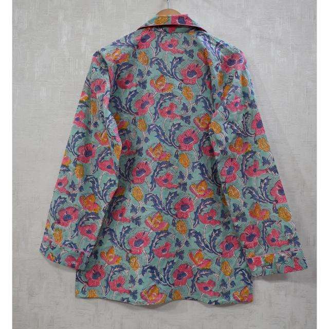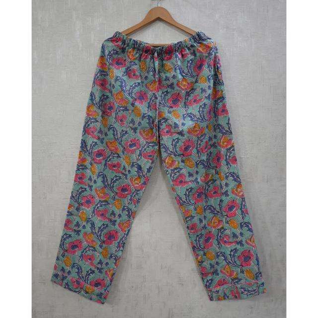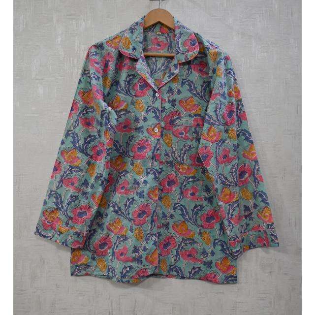ชุดนอนผ้าฝ้ายพิมพ์ลายดอกไม้แบบแฮนด์บล็อก ชุดนอนนุ่มสบายสำหรับพักผ่อนและนอนหลับ