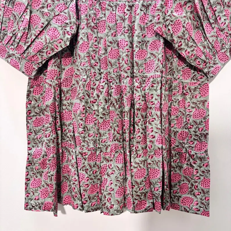 เดรสสั้นทรงทูนิคผ้าฝ้ายพิมพ์ลายดอกไม้ด้วยมือ คอวี แขนสามส่วน ชายระบายลูกไม้ ซักได้ เป็นมิตรต่อสิ่งแวดล้อม เหมาะสำหรับโอกาสทางการ