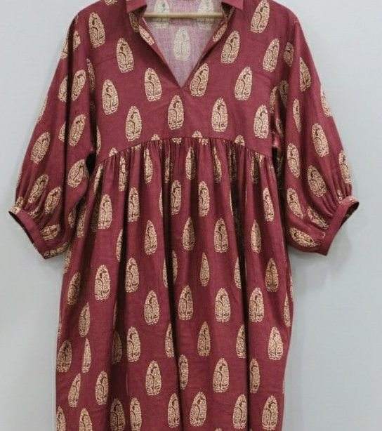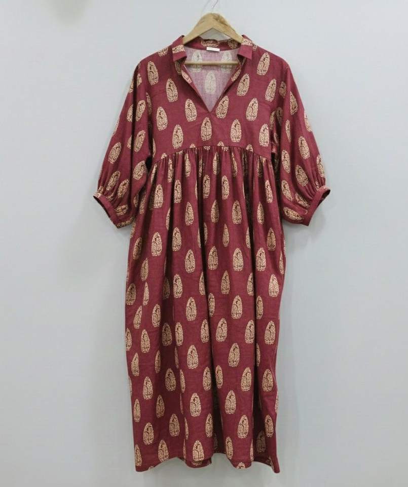 เดรสสีชมพูพิมพ์ลายดอกไม้แบบมัดย้อม ทำมือ เป็นมิตรต่อสิ่งแวดล้อม ความยาวปานกลาง | ผ้าฝ้ายระบายอากาศอย่างดี | ชุดเดรสทำงานเอวธรรมชาติเรียบง่ายสำหรับ
