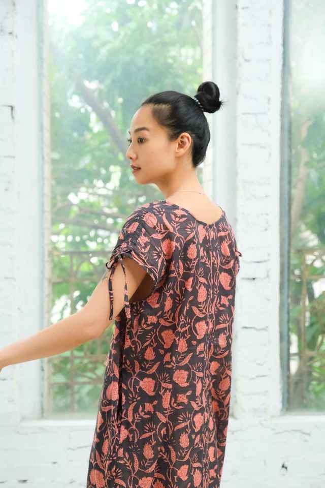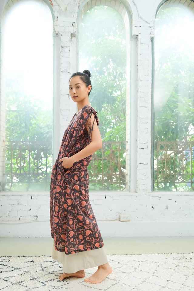 Floral Hand Block Printed Cotton Maxi Dress Bohemian V Neck Dress With Pockets