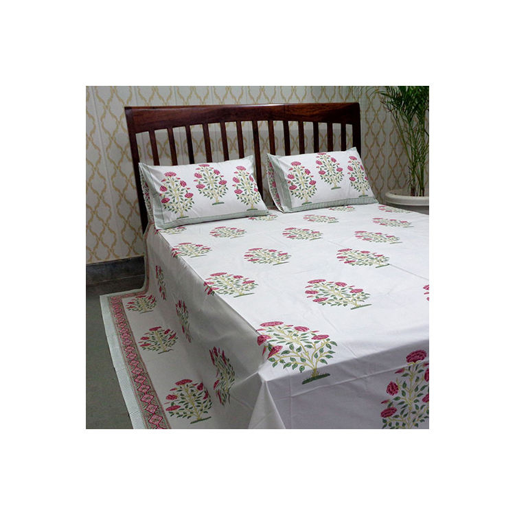 ผ้าปูที่นอนลายดอกไม้พิมพ์มือ ดูดซับน้ำได้ดี ผ้าฝ้ายเพอร์เคล 100% ขนาดคิงไซส์ ทำด้วยมือ สำหรับใช้ในบ้าน ลดราคาถูก