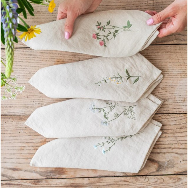 ผ้าเช็ดปากดินเนอร์ทรงสี่เหลี่ยมผ้าฝ้าย 100% ปักลายดอกไม้ด้วยมือ ใช้ซ้ำได้ ใช้แล้วทิ้งได้ ตกแต่งโต๊ะด้วยลายดอกไม้ป่า ช่อดอกไม้สวยงาม