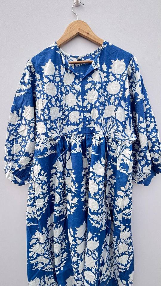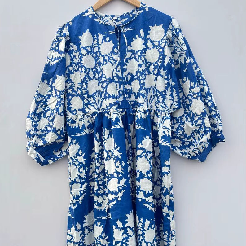 ชุดเดรสผ้าฝ้ายพิมพ์ลายดอกไม้สำหรับผู้หญิง แบบมิดิ มินิ และยาว ชุดเดรสลายบล็อกพิมพ์สำหรับฤดูร้อน ชุดเดรสผ้าฝ้าย ชุดเดรสสำหรับเด็กผู้หญิง
