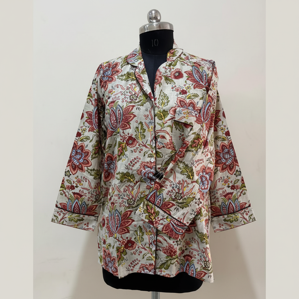 เสื้อเชิ๊ตแขนยาวพิมพ์ลายดอกไม้ทำจากผ้าฝ้ายมีกระดุมเสื้อเชิ๊ตลำลองประดับลูกไม้แฟชั่นวินเทจสำหรับฤดูใบไม้ผลิฤดูร้อนฤดูหนาว
