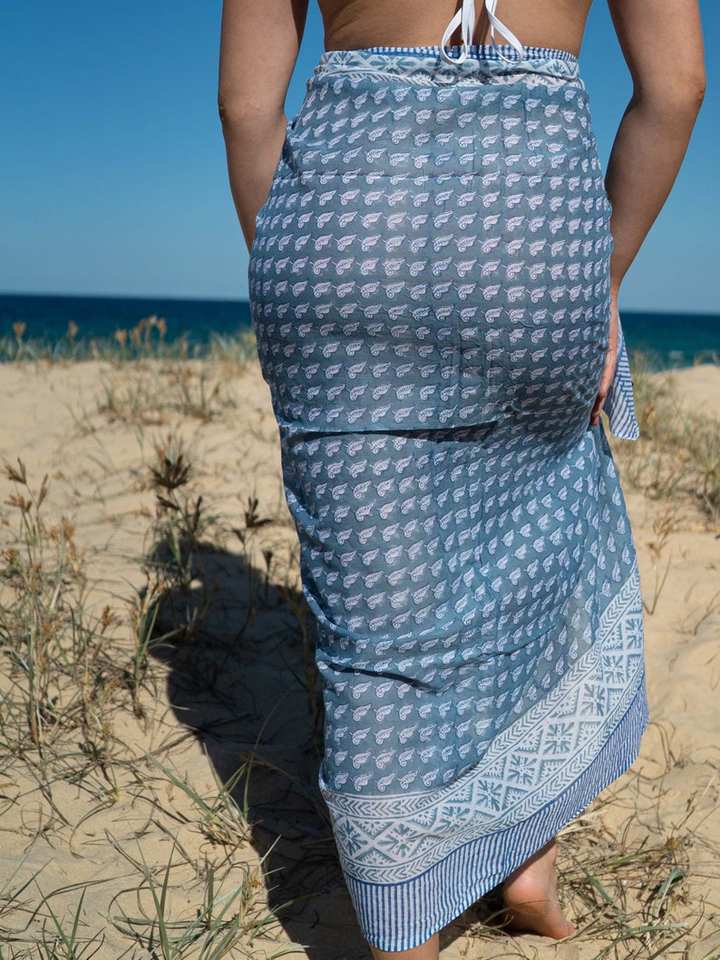 ผ้าซิ่นลายดอกไม้สไตล์อินเดีย ผ้าฝ้ายพิมพ์ลายด้วยมือ ผ้าคลุมชายหาด ผ้าพันตัว ผ้าคลุมไหล่ สำหรับฤดูร้อน