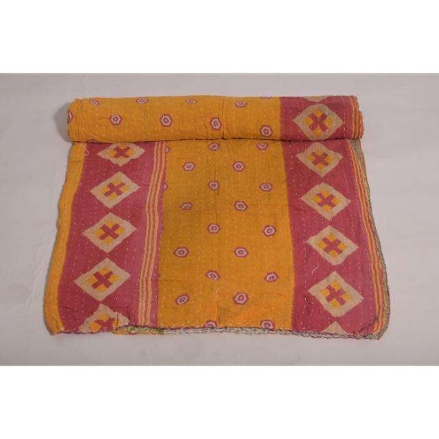ผ้าห่มคันธาลายดอกไม้สไตล์โบโฮ ผ้าฝ้ายทำมือสไตล์อินเดีย วินเทจ ผ้าห่มสองด้าน ใช้ได้ทั้งเป็นผ้าคลุมเตียงและผ้าปูที่นอน เป็นมิตรกับสิ่งแวดล้อม ซักได้ ตกแต่งบ้าน