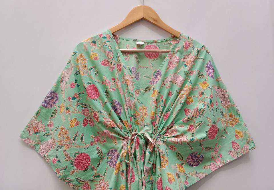 ชุดเดรสคาฟทันทรงเอโอเวอร์ไซส์ผ้าฝ้ายลายลูกไม้สไตล์อินเดียวินเทจสำหรับคุณแม่ สไตล์เรียบร้อย ใช้คลุมชุดว่ายน้ำ ชุดนอน ชุดชายหาด ลายดอกไม้ฤดูร้อน