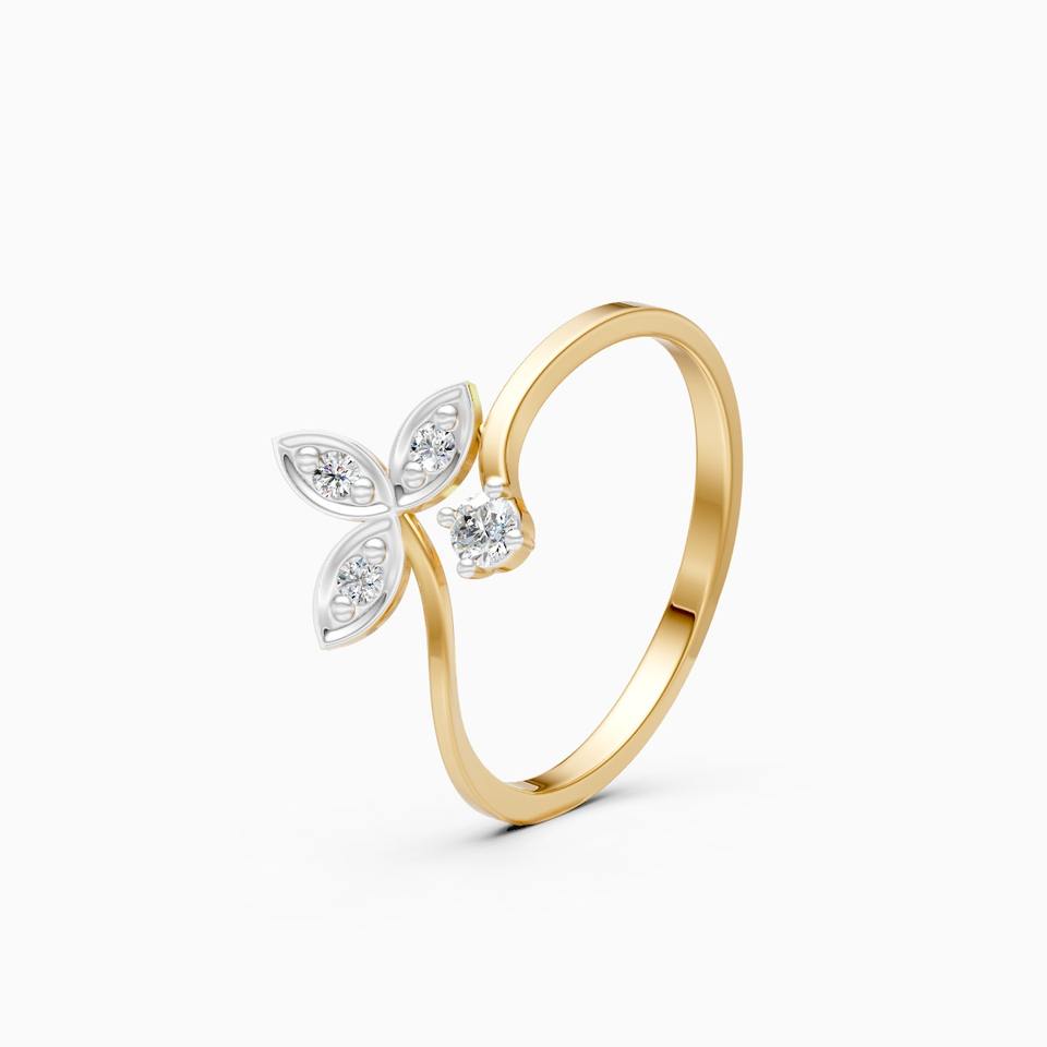 แหวนเพชรทรงใบไม้ประดับเพชรแล็บโกรว์ 0.106 กะรัต ตัวเรือนทองคำ 9K โรสโกลด์ ไวท์โกลด์ เยลโลว์โกลด์