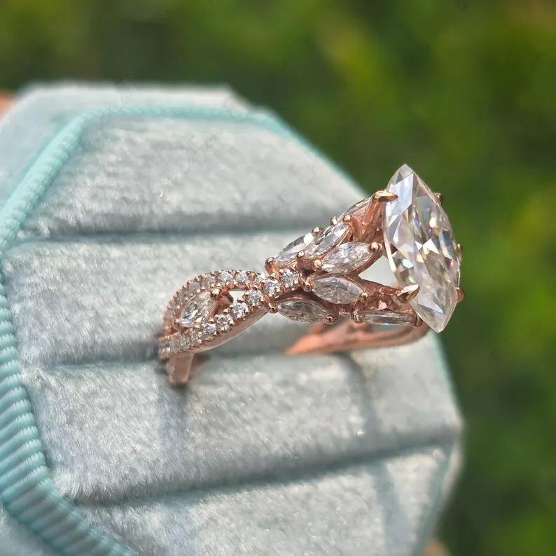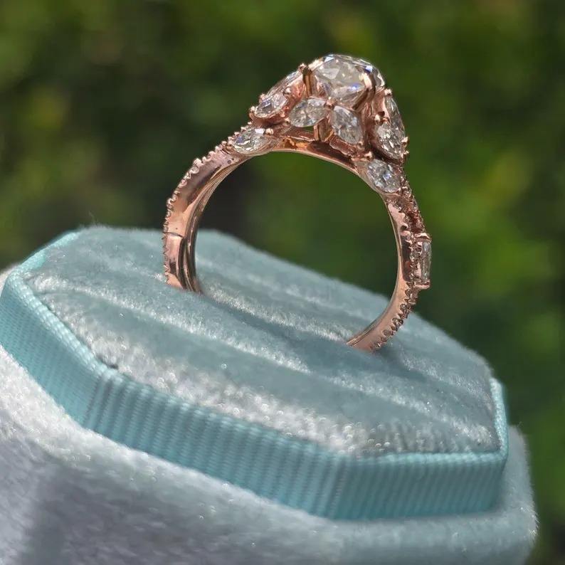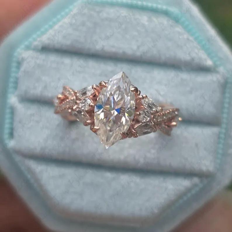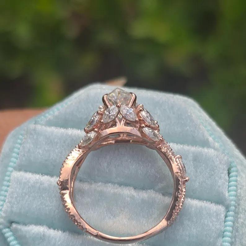 แหวนหมั้นเพชรโมอิสเพชรโมอิส925วินเทจสำหรับผู้หญิงแหวนแต่งงานประดับเพชรโมอิสซาไนต์ประดับเพชรอัญมณีสีเงินลายดอกไม้