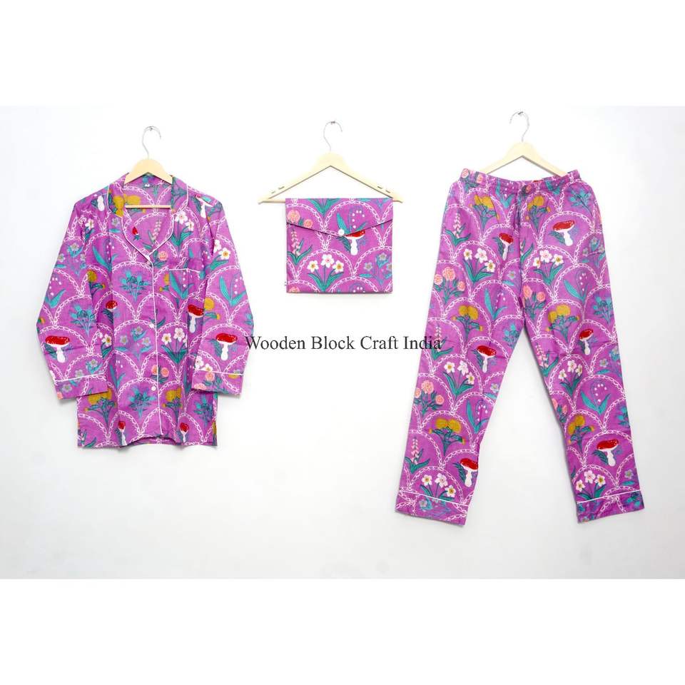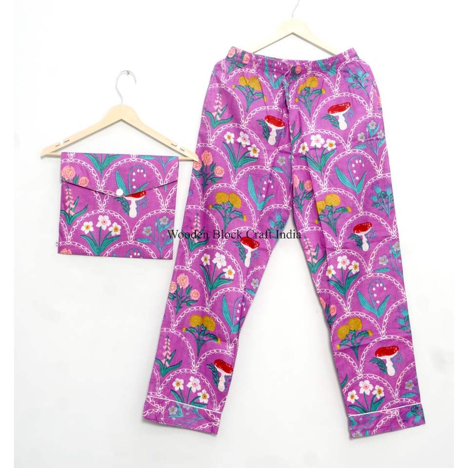 ชุดนอนผ้าฝ้ายลายดอกไม้ เสื้อและกางเกงขายาว เนื้อผ้านุ่ม น้ำหนักเบา ชุดนอนฤดูร้อนสำหรับผู้หญิง ชุดนอนใส่นอนกลางคืน