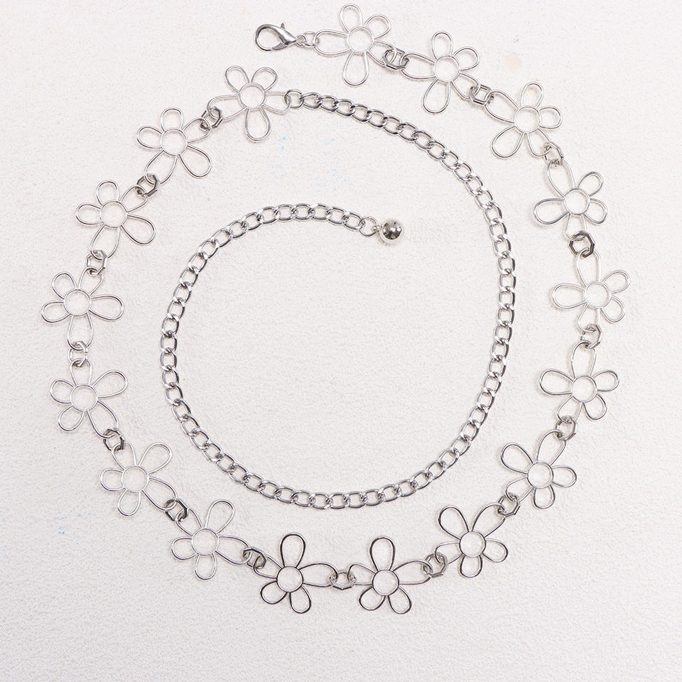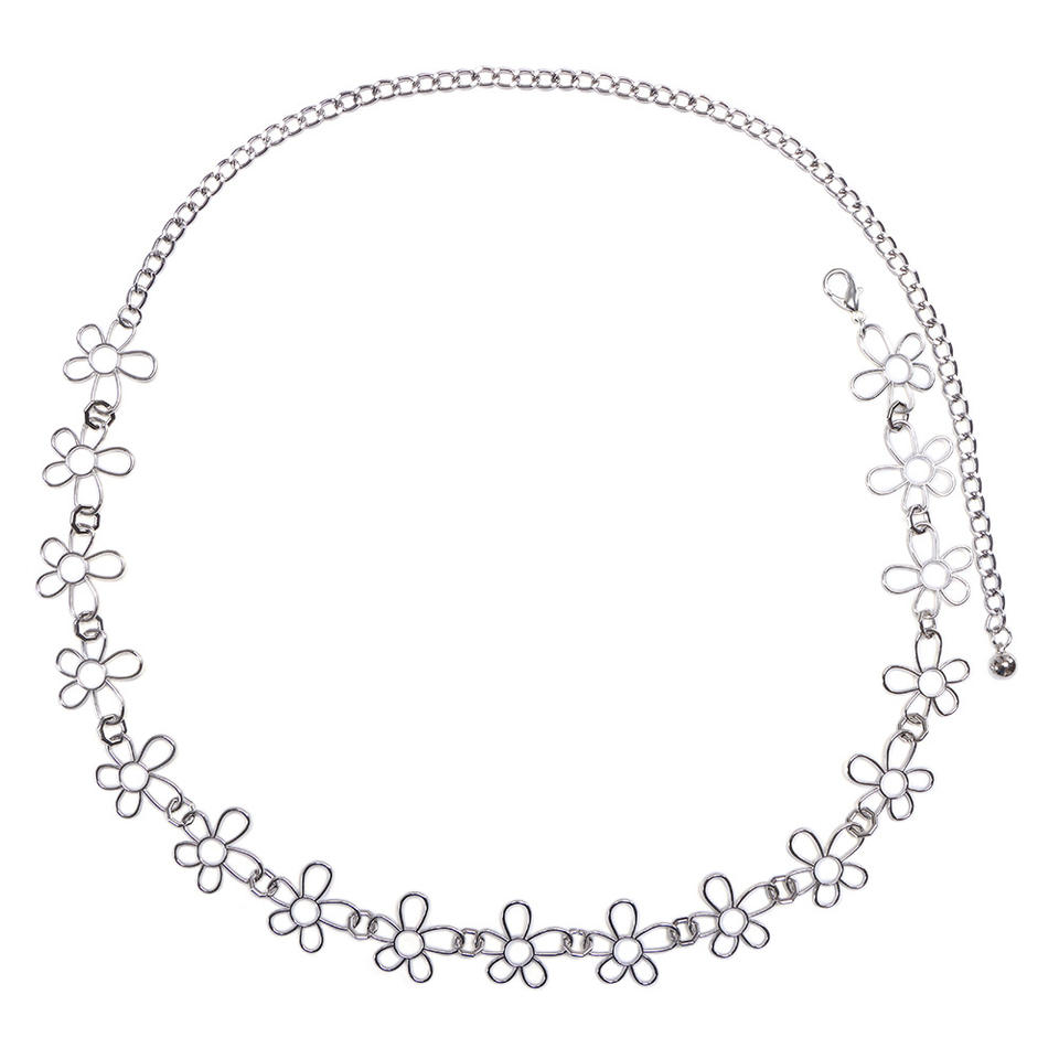 โซ่คาดเอวลายดอกไม้ฉลุลาย สีเงิน โลหะแบบทิเบต สำหรับสวมใส่ทุกวัน ดีไซน์แบบพันรอบตัว