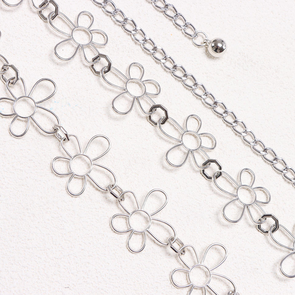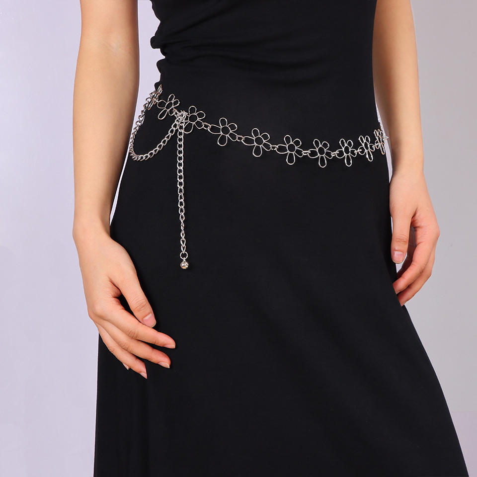 โซ่คาดเอวลายดอกไม้ฉลุลายสีเงินโลหะทิเบตสำหรับสวมใส่ทุกวัน