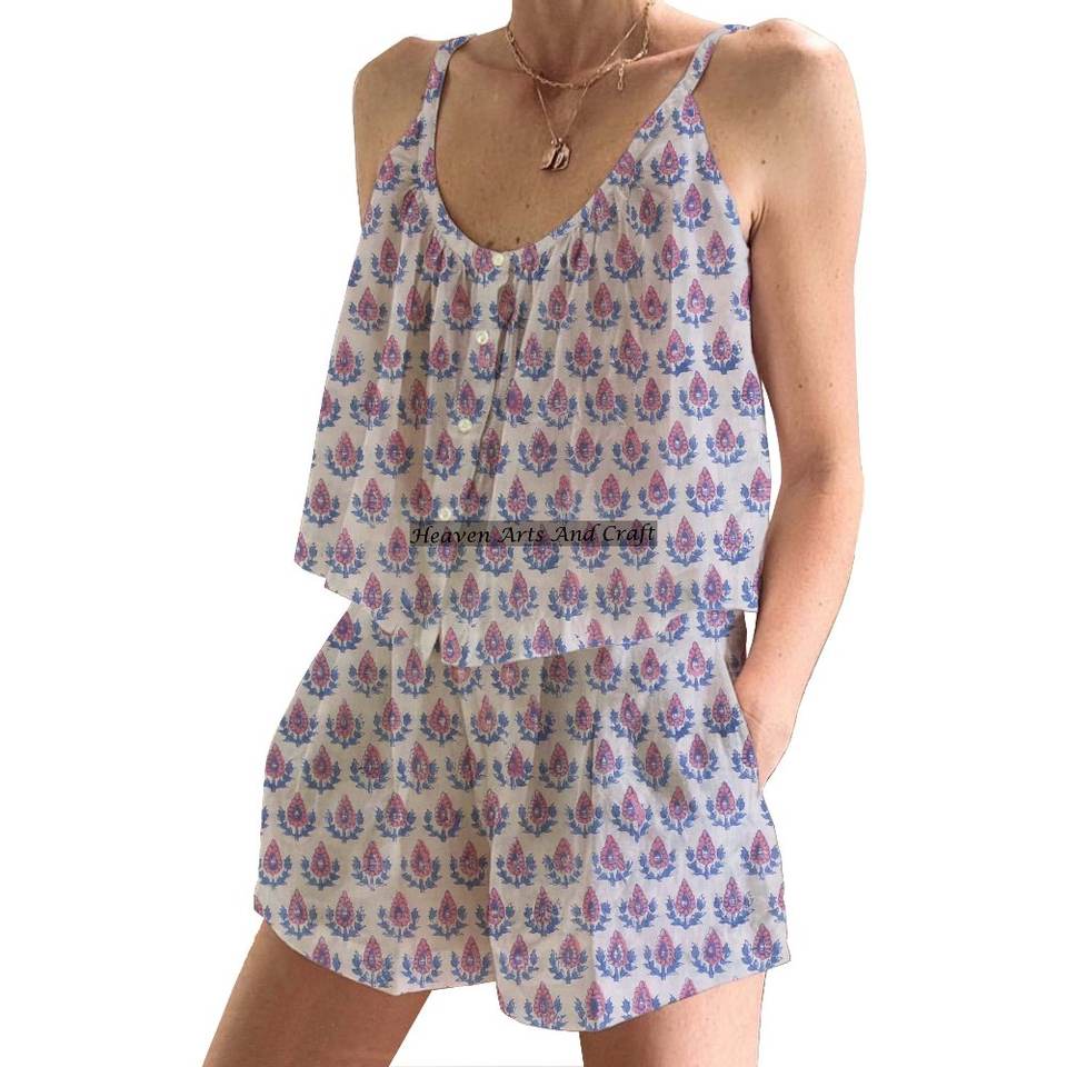 ชุดนอนขาสั้นพิมพ์ลายผ้าฝ้าย 100%, ผ้าฝ้ายทอ