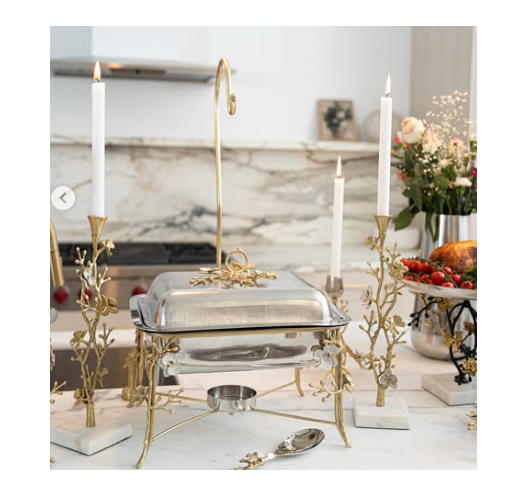 ถาดอุ่นอาหารลายดอกไม้หรูหราพร้อมดอกไม้ทองเหลืองแขวนประดับ ถาดอุ่นอาหารสีเงินวินเทจ 7 ลิตร