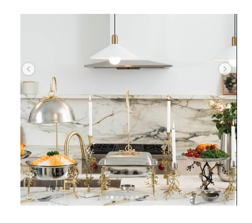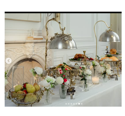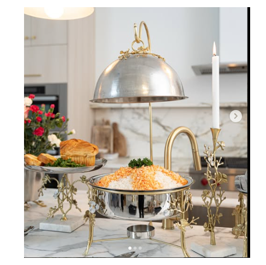 ถาดอุ่นอาหารลายดอกไม้หรูหราพร้อมดอกไม้ทองเหลืองแขวนประดับ ถาดอุ่นอาหารสีเงินวินเทจจากอินเดีย