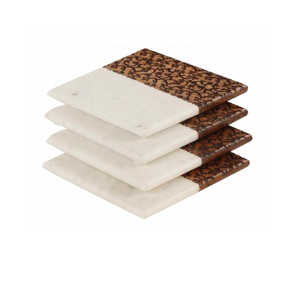 ชุดที่รองแก้วลายดอกไม้หินอ่อนและไม้รองแก้ว4ชิ้นสำหรับกาแฟเครื่องดื่มชาโต๊ะรับประทานอาหารที่ทันสมัยสำหรับตกแต่งบ้าน