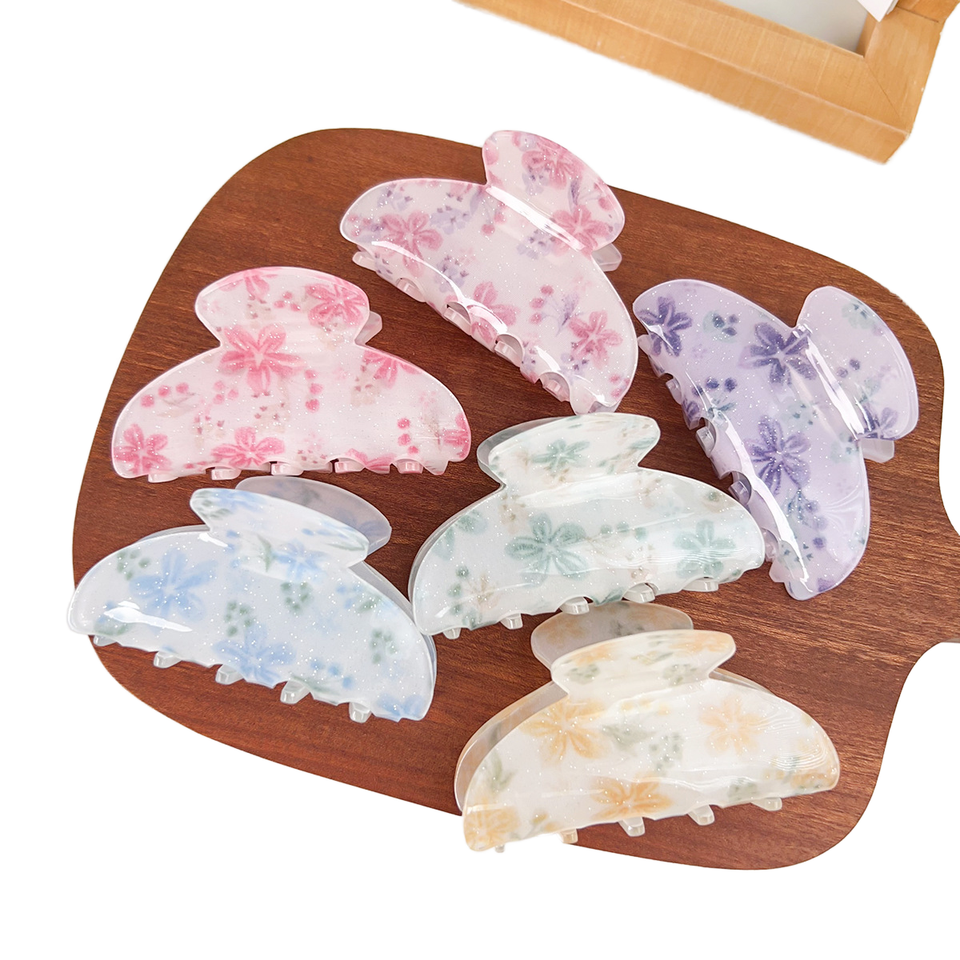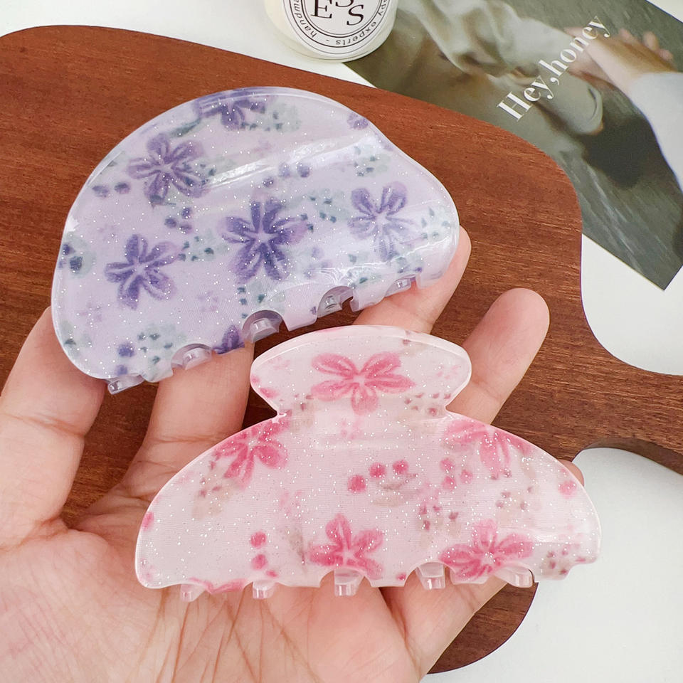 กิ๊บติดผมลายดอกไม้ขนาดใหญ่สไตล์วินเทจ กิ๊บอะคริลิกแบบมีกลิตเตอร์ กิ๊บหนีบผมแบบไม่ลื่นสำหรับผู้หญิง