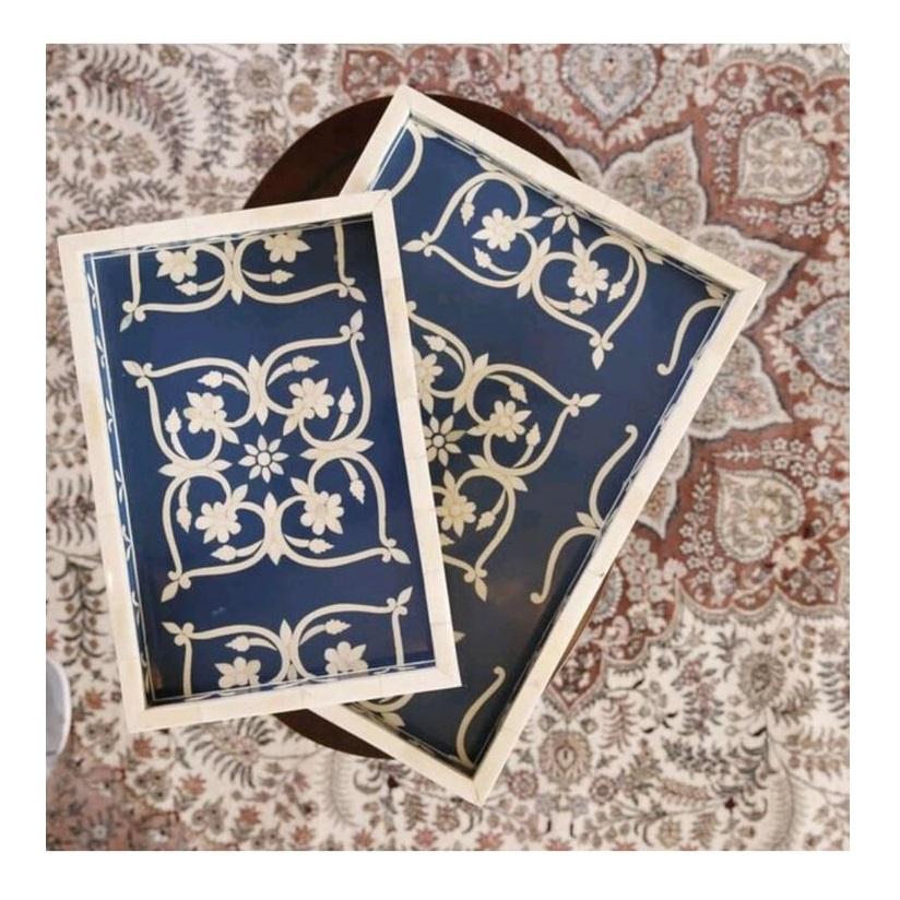 ถาดเสิร์ฟลายดอกไม้ งานฝังกระดูกคุณภาพพิเศษ ดีไซน์ทันสมัยสำหรับตกแต่งบ้าน ถาดเสิร์ฟและจานรองอาหารสำหรับใช้ในชีวิตประจำวัน