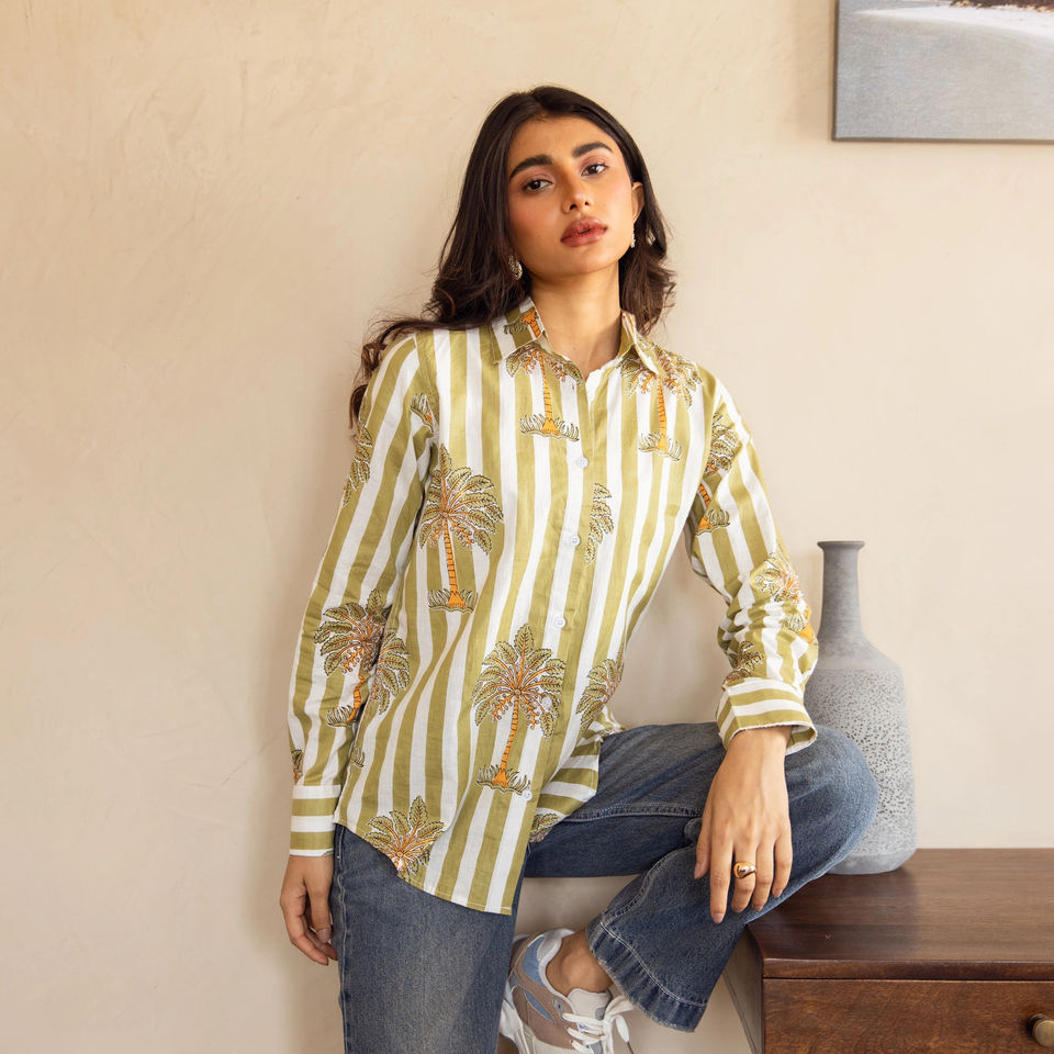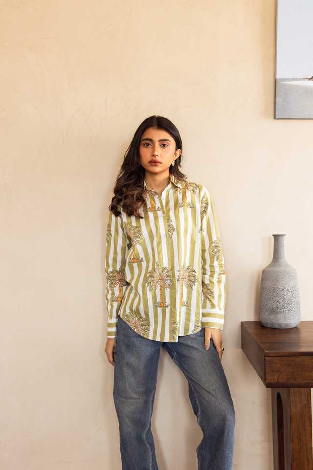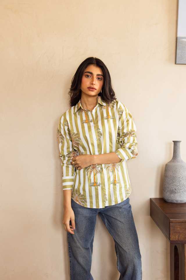 เสื้อเชิ้ตปาร์ตี้วินเทจลายมีลายดอกพลัมสีเขียวพิมพ์ลายสวยงามชุดแฟนซีคลาสสิกหรูหราของผู้หญิง