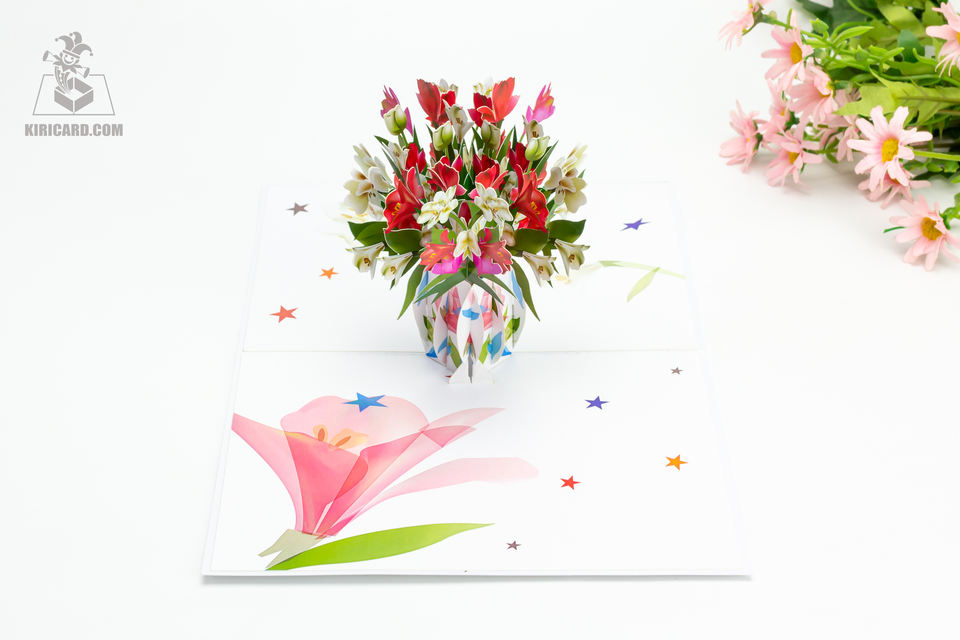 ดอกไม้ Pop Up การ์ดวันเกิดวันแม่วันเกิดการพิมพ์คุณภาพสูงการ์ดดอกเบญจมาศการ์ดอวยพรหัตถกรรม
