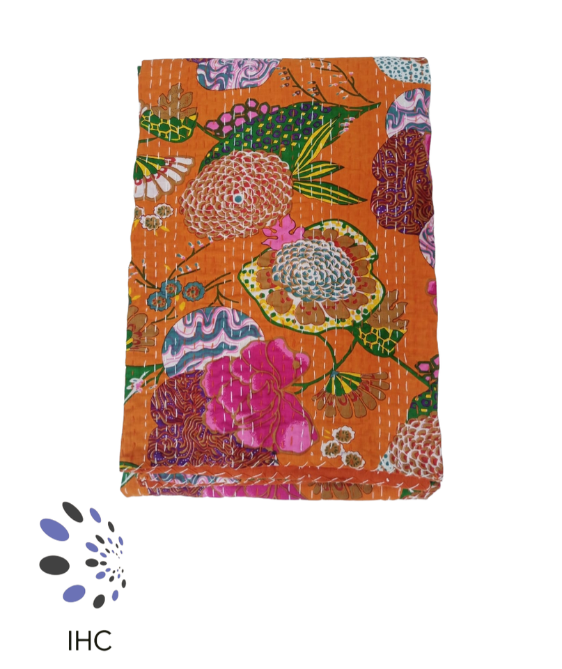 ผ้าคลุมเตียงพิมพ์ลายดอกไม้ผ้าฝ้ายขนาดควีนไซส์ผ้า100% วินเทจของตกแต่งบ้านเครื่องนอนผ้าห่มนวมแบบบล็อกมือสวมใส่สบาย