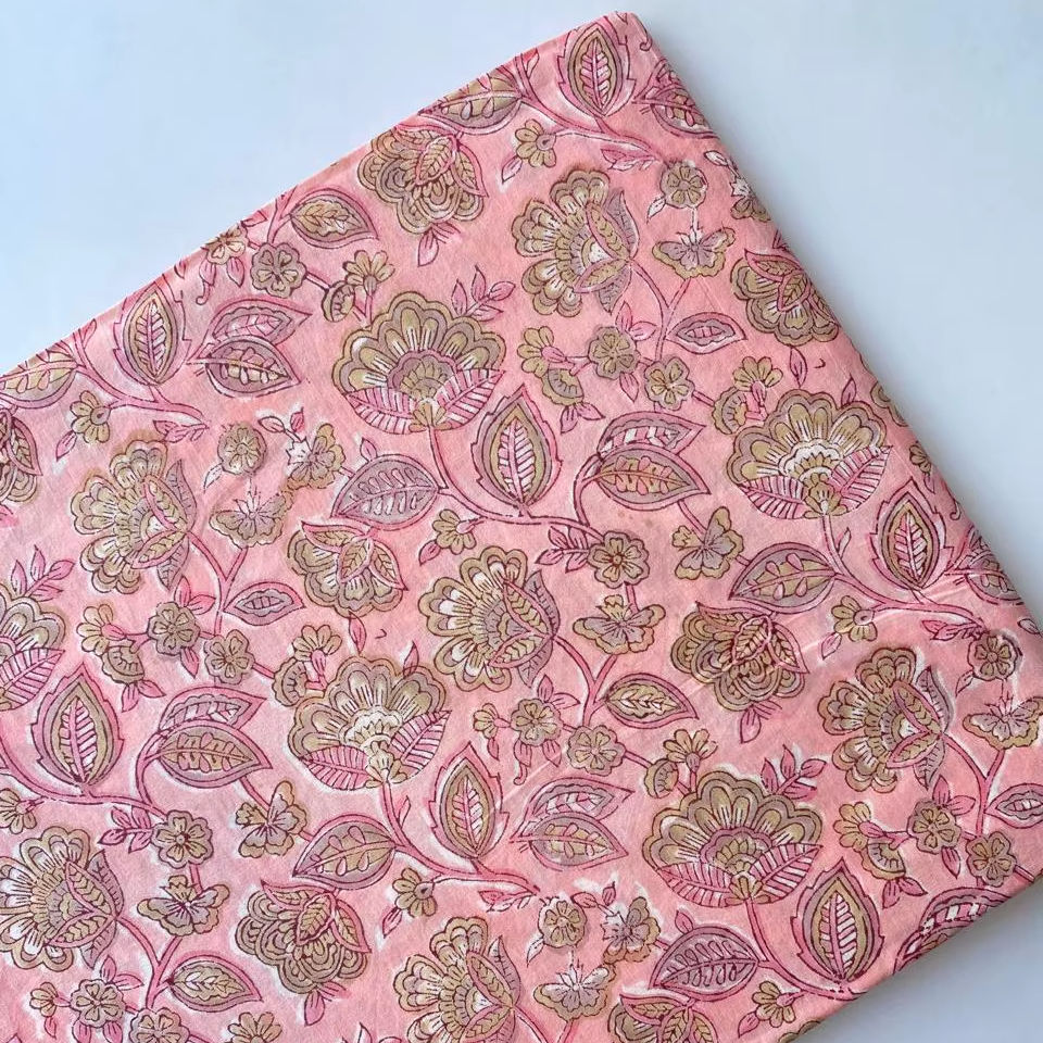 ผ้าพิมพ์ลายดอกไม้ พิมพ์ลายบล็อก ผ้าฝ้ายอินเดียแท้ 100% ย้อมสีธรรมชาติจากพืช เป็นมิตรต่อสิ่งแวดล้อม เนื้อผ้านุ่ม สำหรับชุดเดรสและกระเป๋าผู้หญิง
