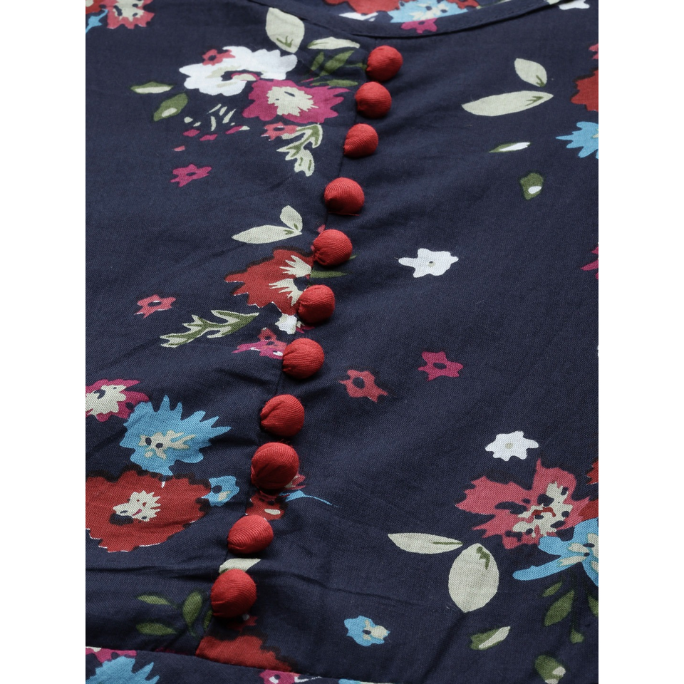 Three-fourth sleeves,Round neck with button design,Floral printedKurta Design