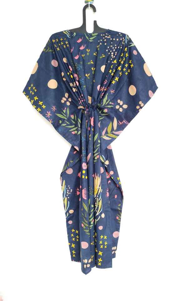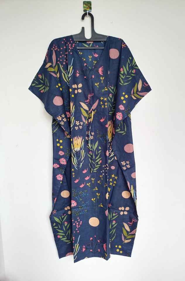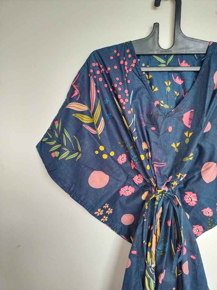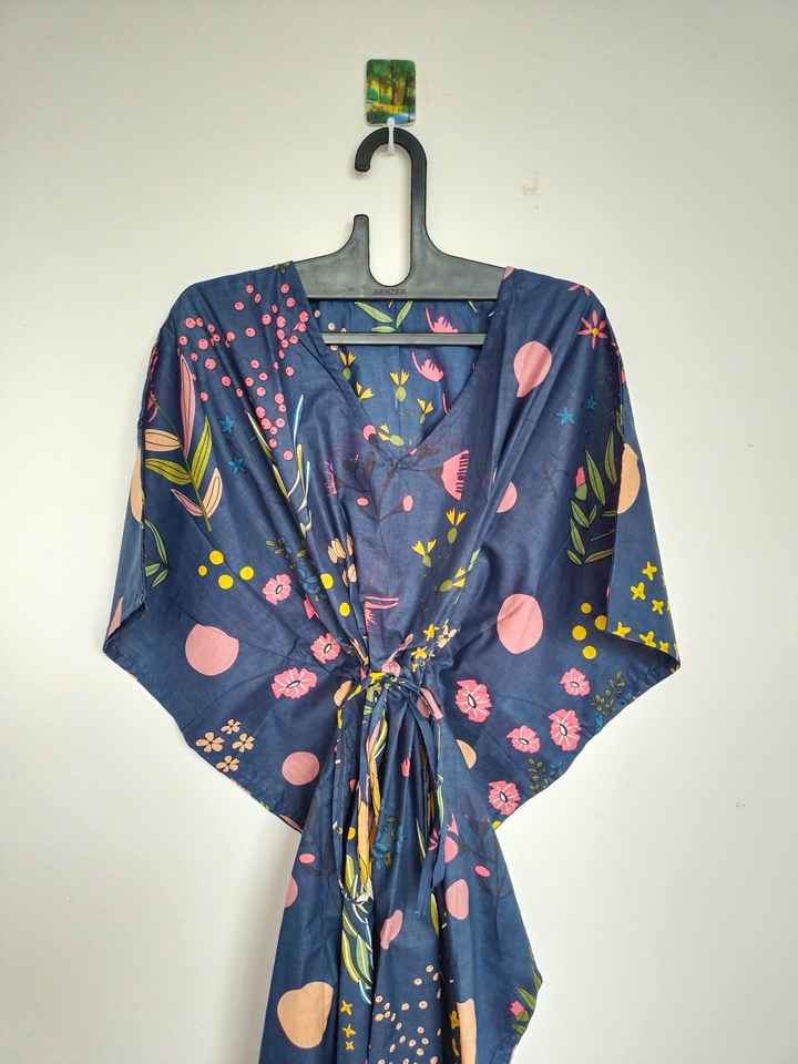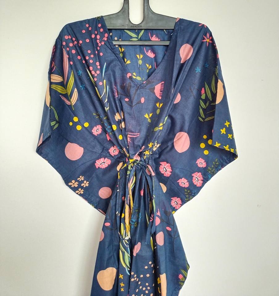 เดรสผ้าคอตตอนทรงเอไลน์พิมพ์ลายดอกไม้ทำมือชุดคลุมชายหาดโอเวอร์ไซส์วินเทจ