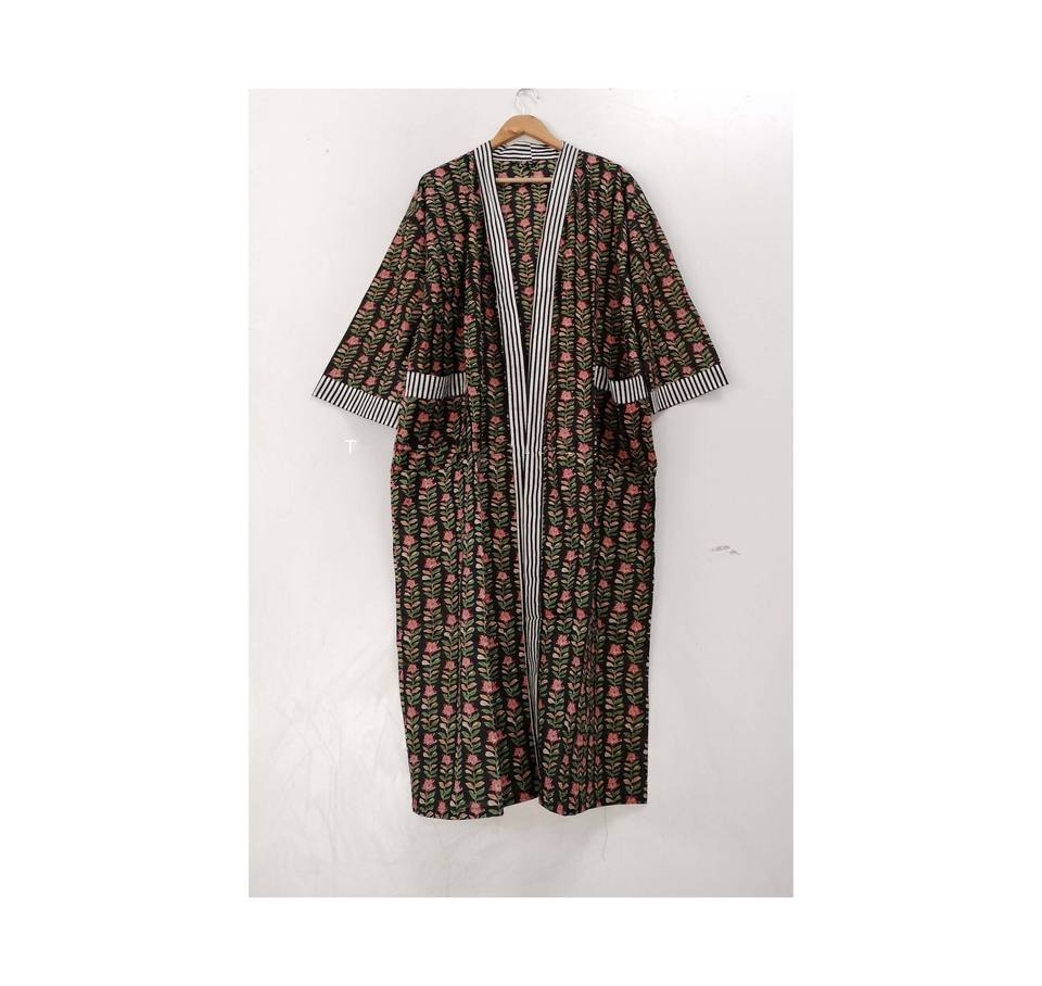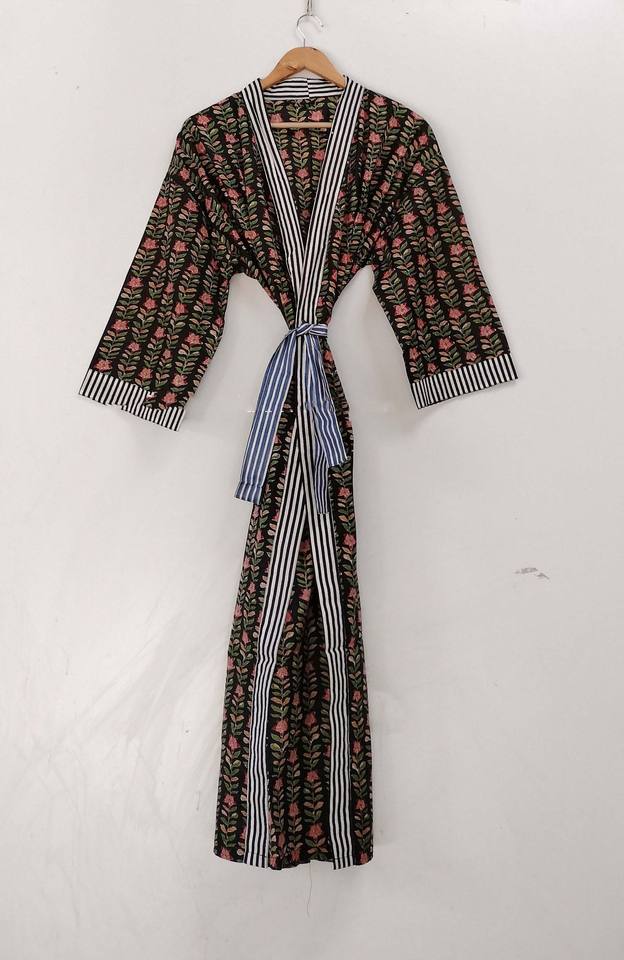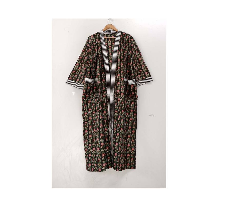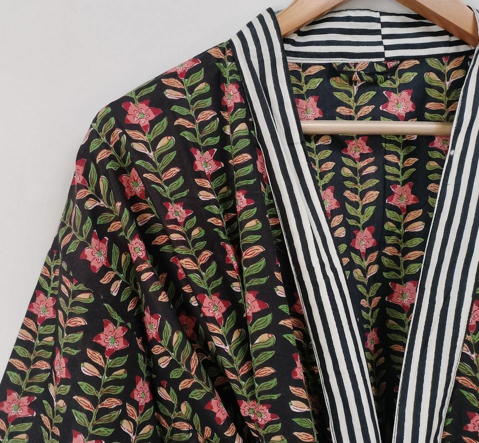 ชุดคลุมกิโมโนผ้าฝ้ายลายดอกไม้: ชุดคลุมชายหาดสไตล์โบโฮ
