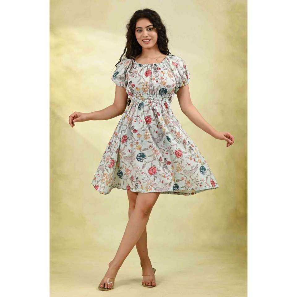 เดรสผ้าฝ้ายลายดอกพิมพ์ลายธรรมชาติ ทรงเอไลน์ แขนสั้น เอวธรรมชาติ สไตล์โบฮีเมียน สำหรับผู้หญิง ซักได้ เป็นมิตรต่อสิ่งแวดล้อม เหมาะสำหรับฤดูร้อน