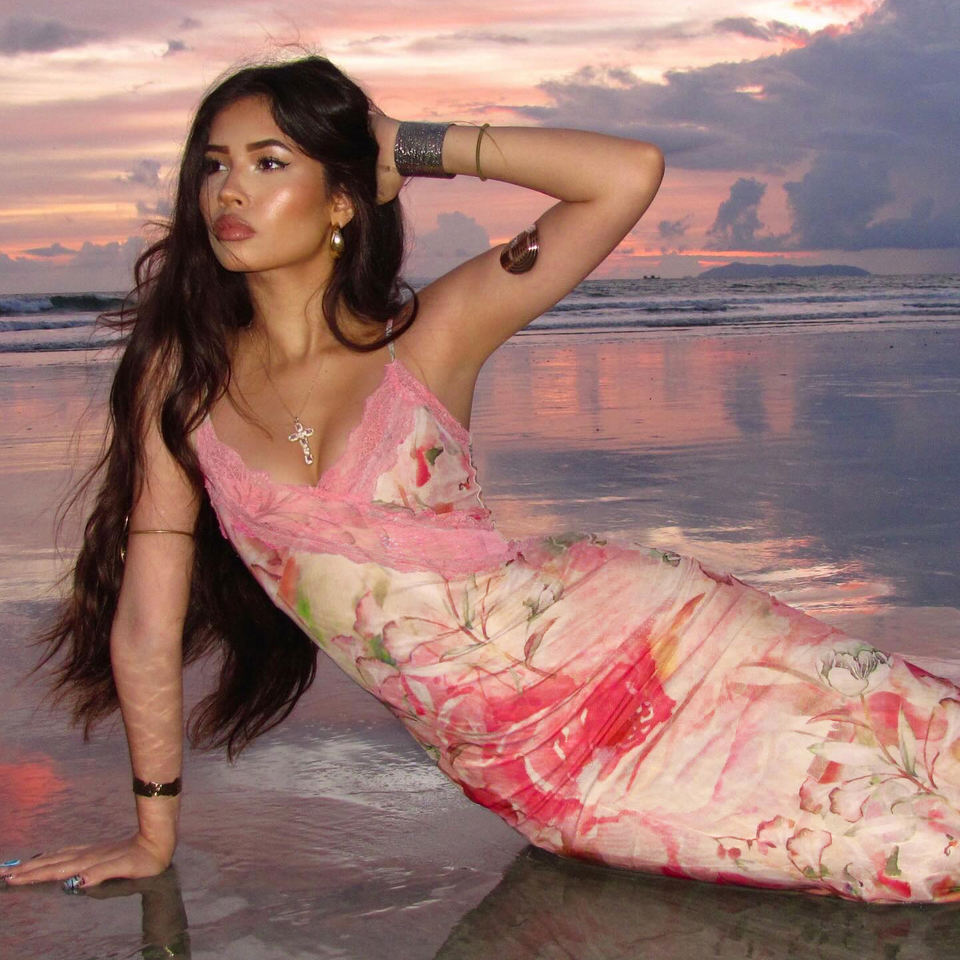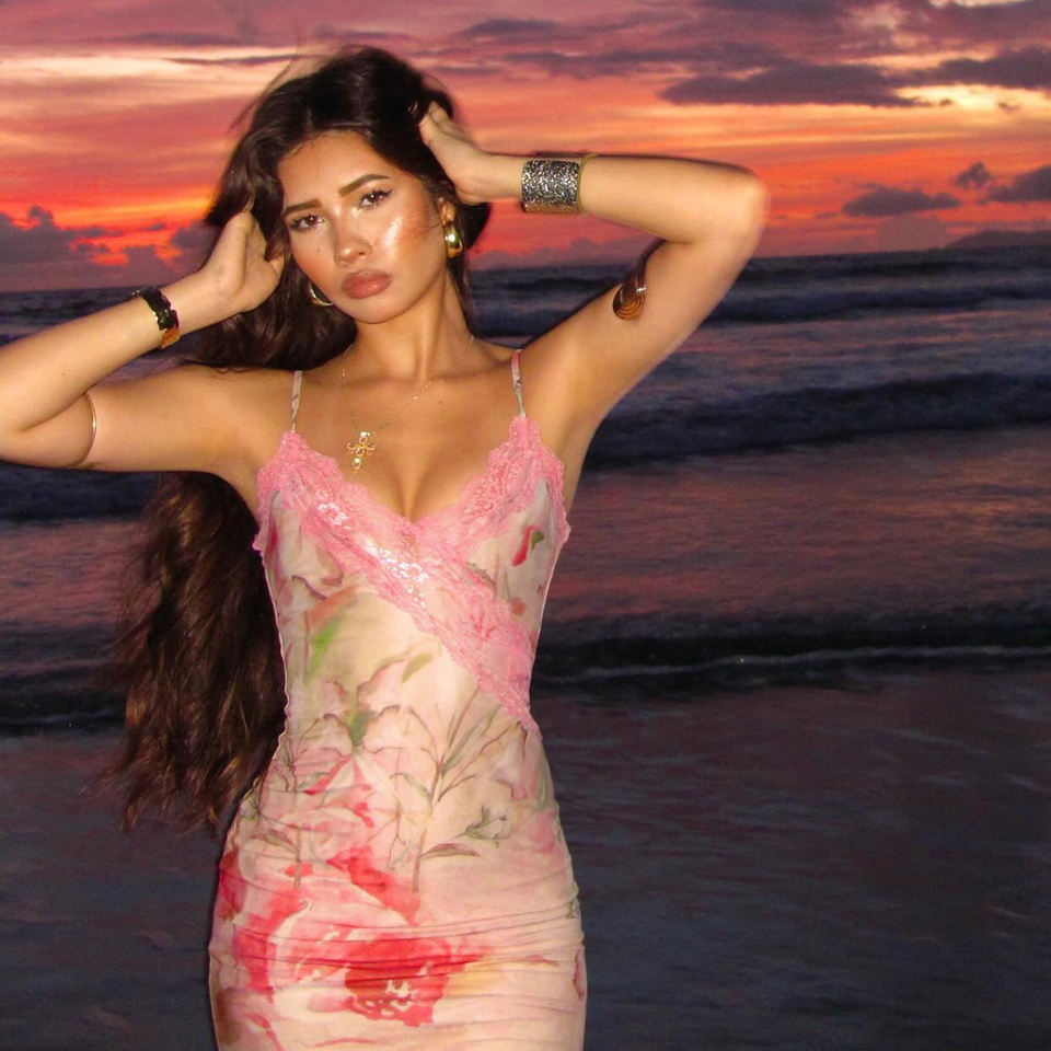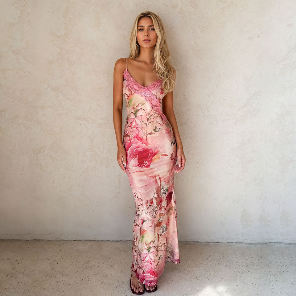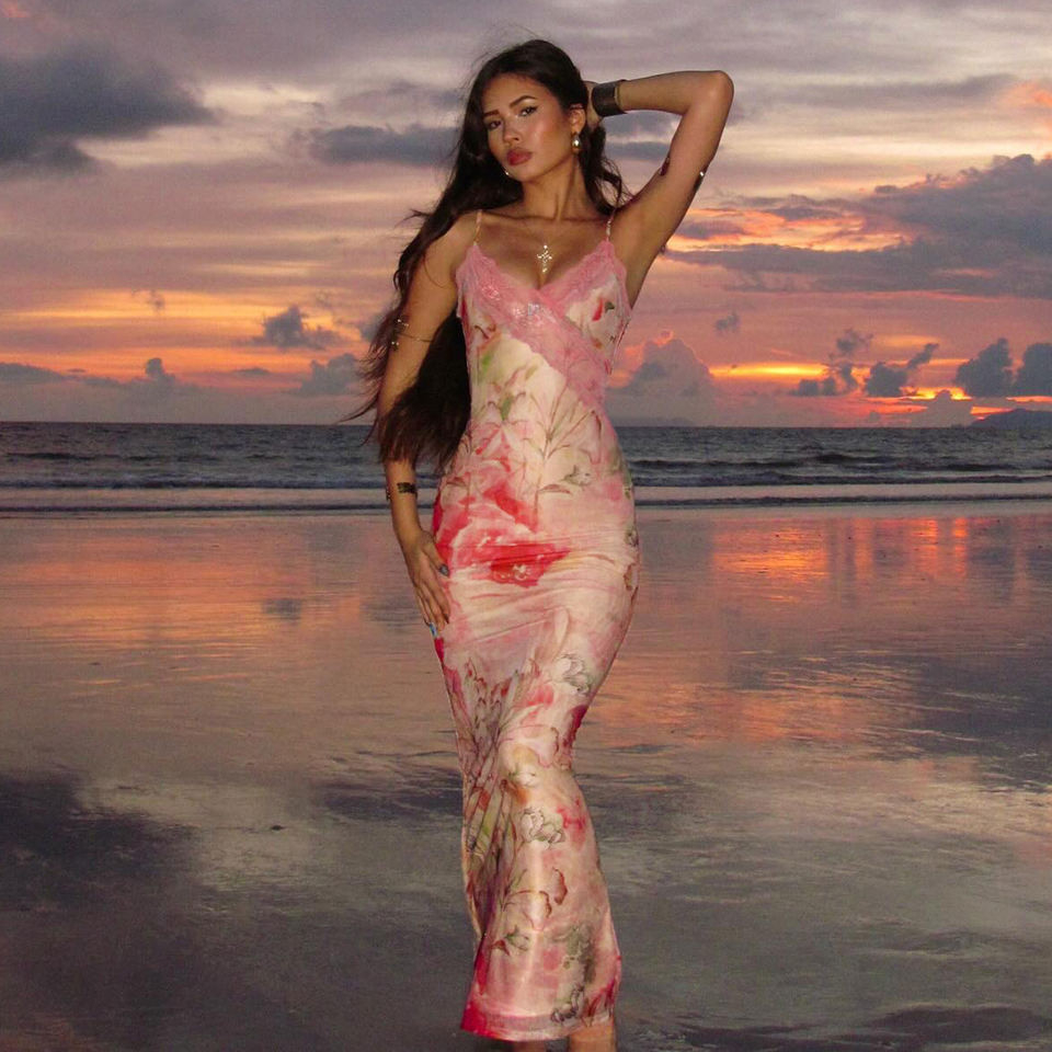 เดรสไหมพรมลายดอกไม้ สายเดี่ยว ทรงเข้ารูป น้ำหนักเบา เหมาะสำหรับวันหยุดฤดูร้อน สไตล์ลำลอง