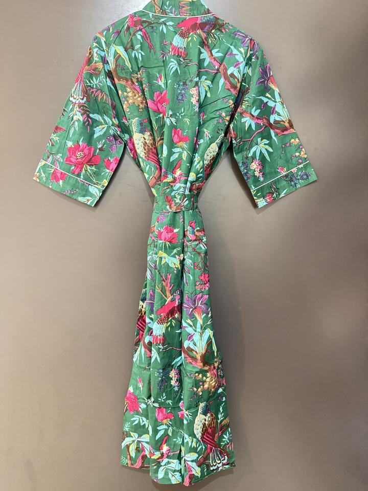 ชุดคลุมผ้าฝ้ายพิมพ์ลายดอกไม้คลาสสิกสำหรับผู้หญิง เนื้อผ้าวาฟเฟิล แขนยาว ความยาวระดับเข่า เนื้อนุ่ม น้ำหนักเบา พิมพ์ลายด้วยมือ เอวสูง ผลิตตามแบบ ODM