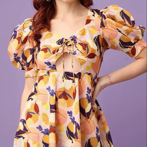 เดรสลายดอกไม้สำหรับผู้หญิง ความยาวปานกลาง คุณภาพสูง ปรับแต่งได้ สง่างาม เหมาะสำหรับงานกลางคืน เอวทรงธรรมชาติ ผลิตจากผ้าจอร์เจตที่เป็นมิตรกับสิ่งแวดล้อม
