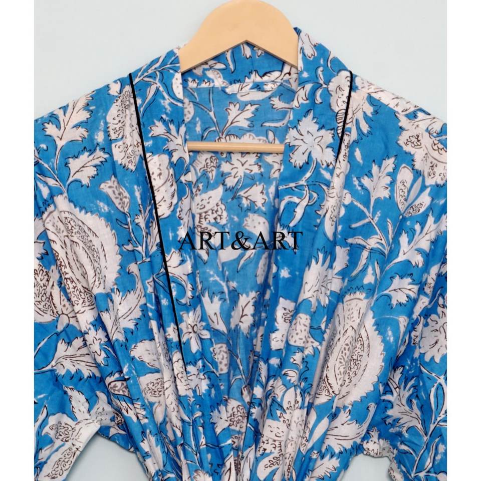 ชุดนอนผู้หญิงลายดอกไม้ ชุดกิโมโนเพื่อนเจ้าสาว ชุดนอนอินเดีย ชุดคลุมลายดอกไม้ออร์แกนิค ผ้าฝ้ายแท้ 100% ด้านหน้าลายดอกไม้