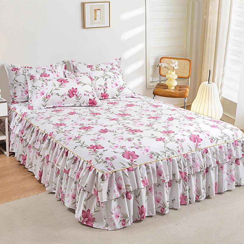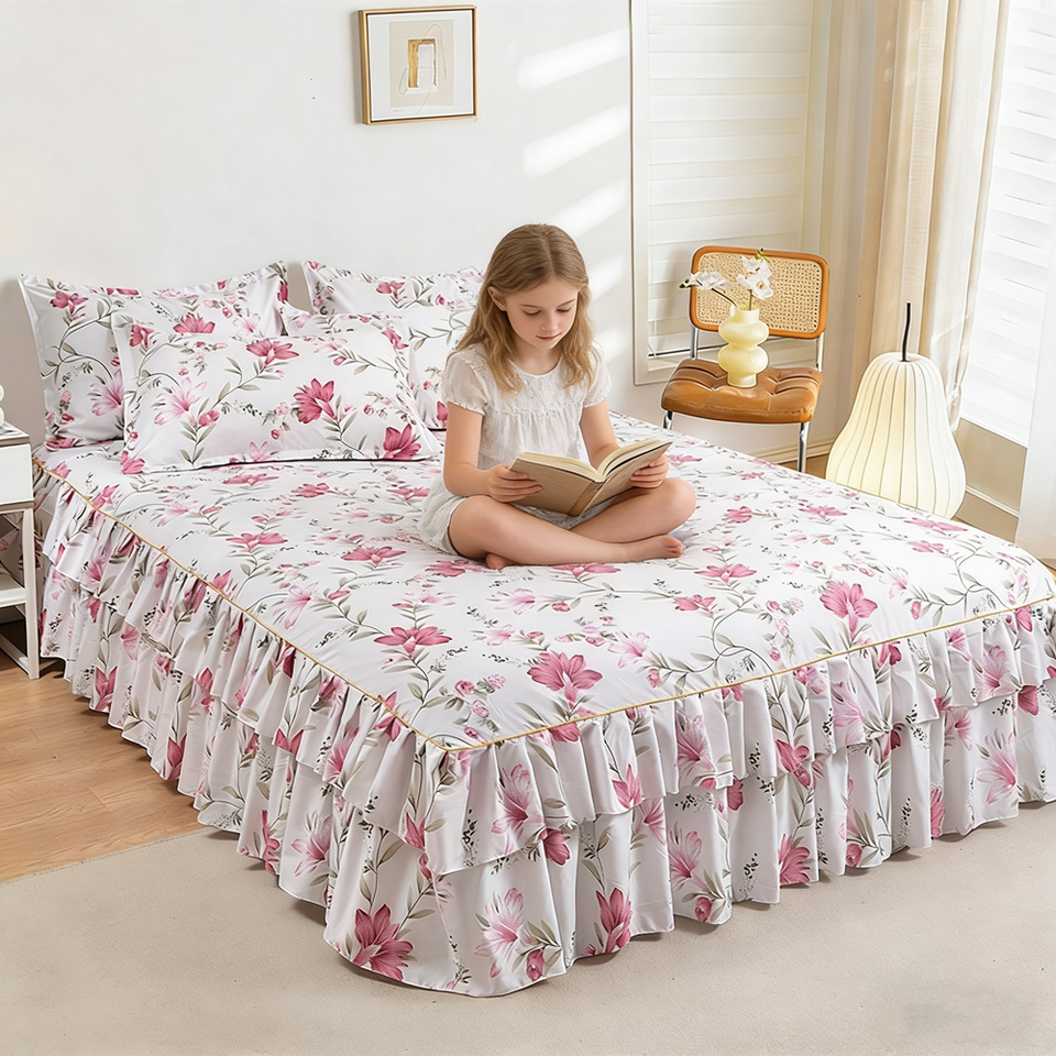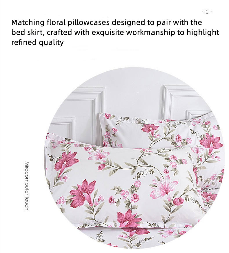 ชุดเครื่องนอนลายดอกไม้ ผ้าโพลีเอสเตอร์ 300 เส้นด้าย ผ้าปูที่นอนแบบมีกระโปรง 3 ชิ้น พร้อมปลอกหมอน 2 ใบ คุณภาพสูง ราคาโรงงาน ซักได้