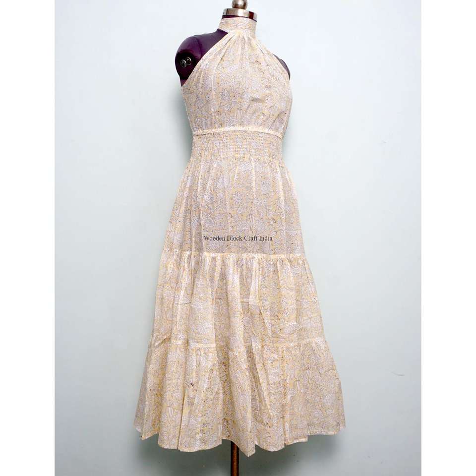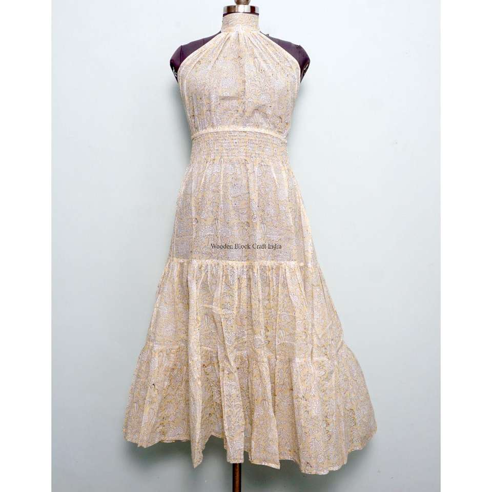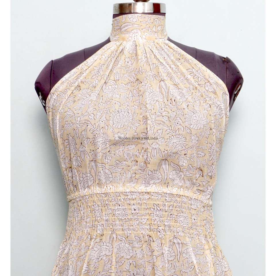 เดรสยาวพิมพ์ลายดอกไม้สไตล์โบฮีเมียน คอ halter ผูกหลัง โชว์หลัง เอวทรงเอ็มไพร์ จับจีบ ผ้าพลิ้ว ใส่สบายสำหรับฤดูร้อน สวยงาม