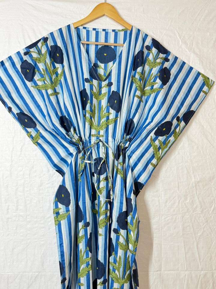 ชุดเดรสผ้าฝ้ายพิมพ์ลายดอกไม้สไตล์โบฮีเมียน ชุดแม็กซี่คาฟตันทรงหลวมสำหรับใส่ไปเที่ยวทะเลช่วงฤดูร้อน ไซส์พลัส ชุดคลุม