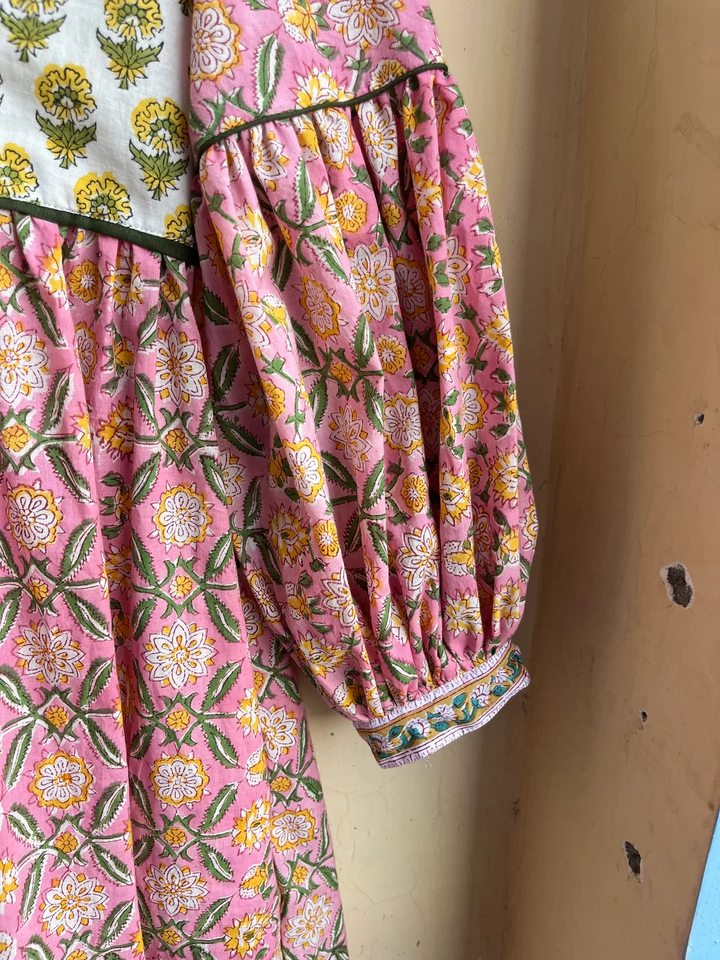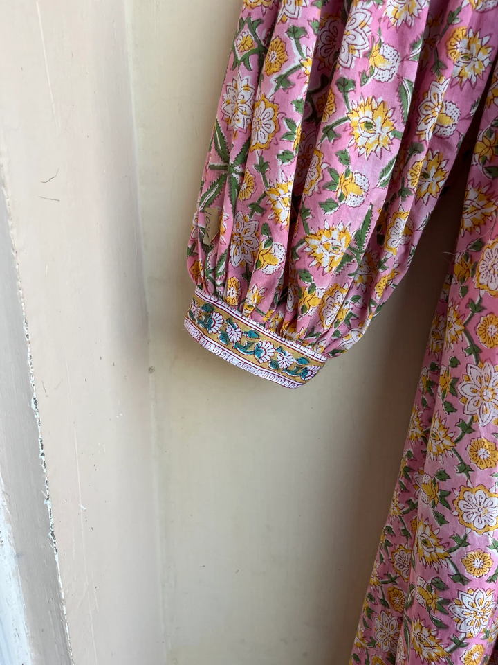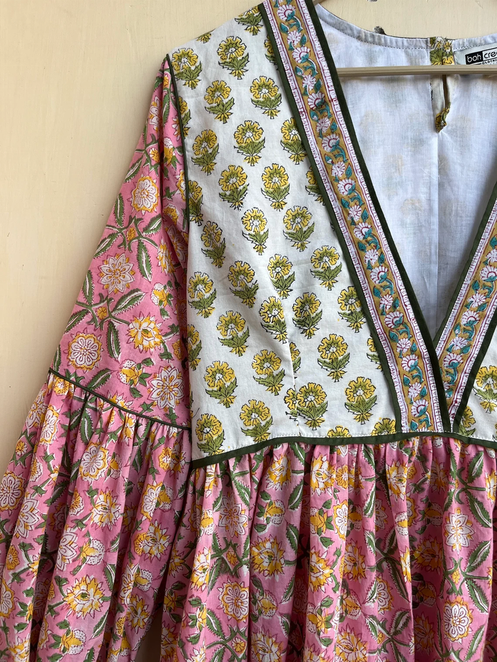 เดรสยาวผ้าฝ้ายพิมพ์ลายดอกไม้หลากสี คอวี สไตล์โบฮีเมียน ปักลายแบบดั้งเดิม ชุดลำลองสำหรับผู้หญิง